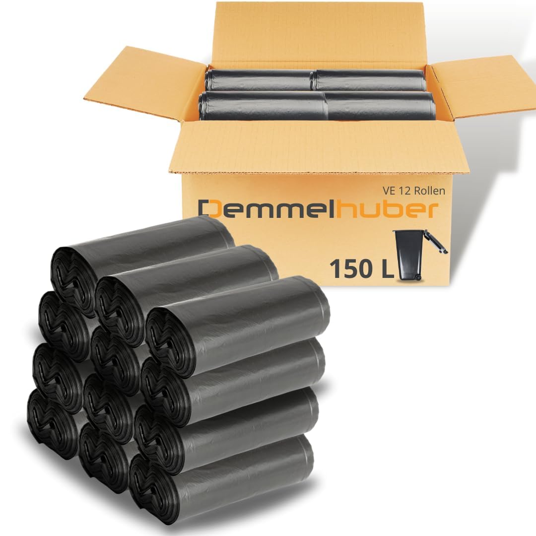 Müllsäcke 150 Liter extrastark & reissfest Müllbeutel Abfallbeutel Müllsack Mülltüte Abfallsäcke für Haus, Garten, Industrie & Gastronomie von Demmelhuber (12 Rollen)