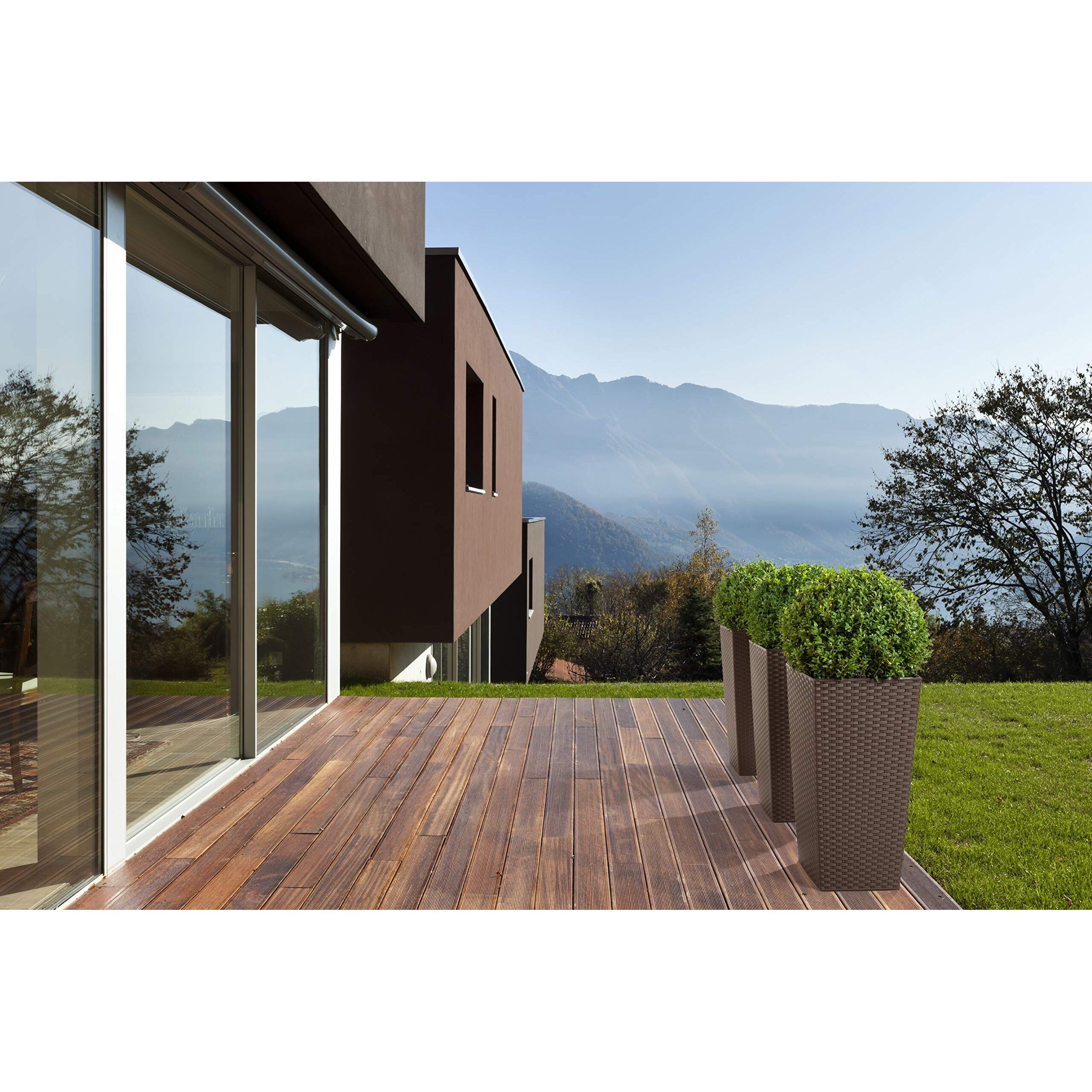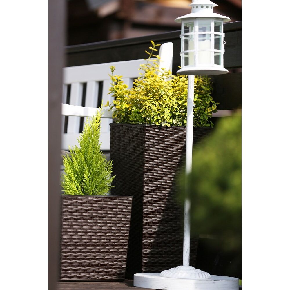 Happy Flower MultiProject | Blumentopf | Pflanzkübel | inkl. Einsatz | Quadrat | Rattan-Optik | 4 Grössen 3 Farben | Übertöpfe (30 cm x 30 cm/Höhe 57 cm, Braun)