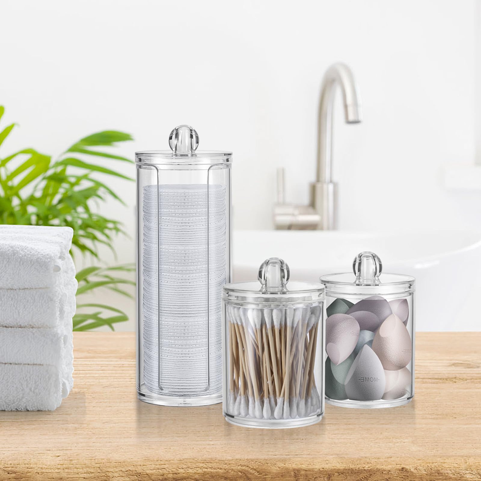 MumdoYAL 3 Stk Wattepadspender,Schminktisch Zubehör,Bathroom Organizer,Wattepads Aufbewahrung mit Deckel,Wattestäbchen-Behälter,for Dresser, Bathroom,Bedroom
