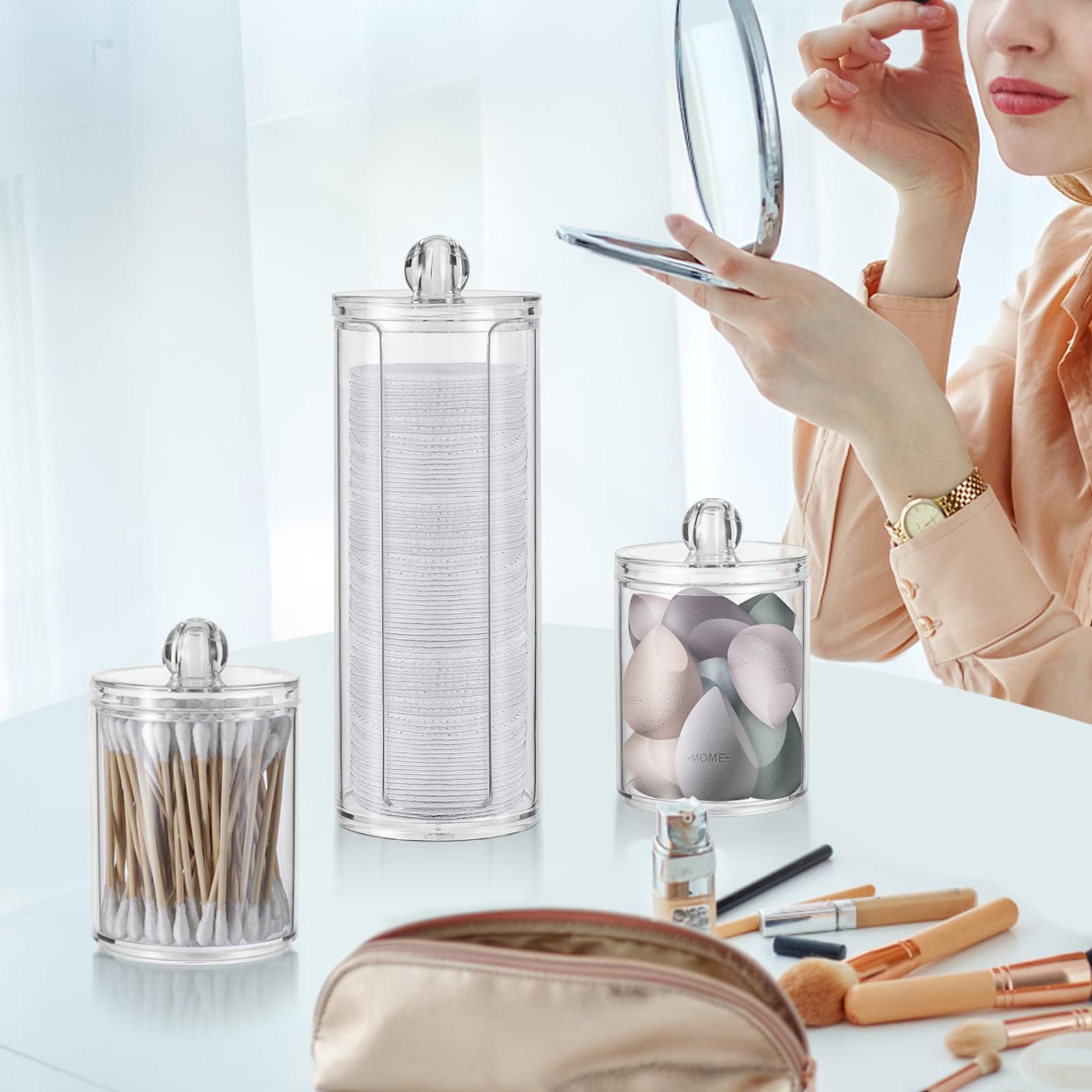 • Sie erhalten 3 Stück wattepads aufbewahrung. Mit der Aufbewahrungsbox für Wattestäbchen können Sie Gegenstände klassifizieren und den Schminktisch oder das Waschbecken ordentlicher aussehen lassen.