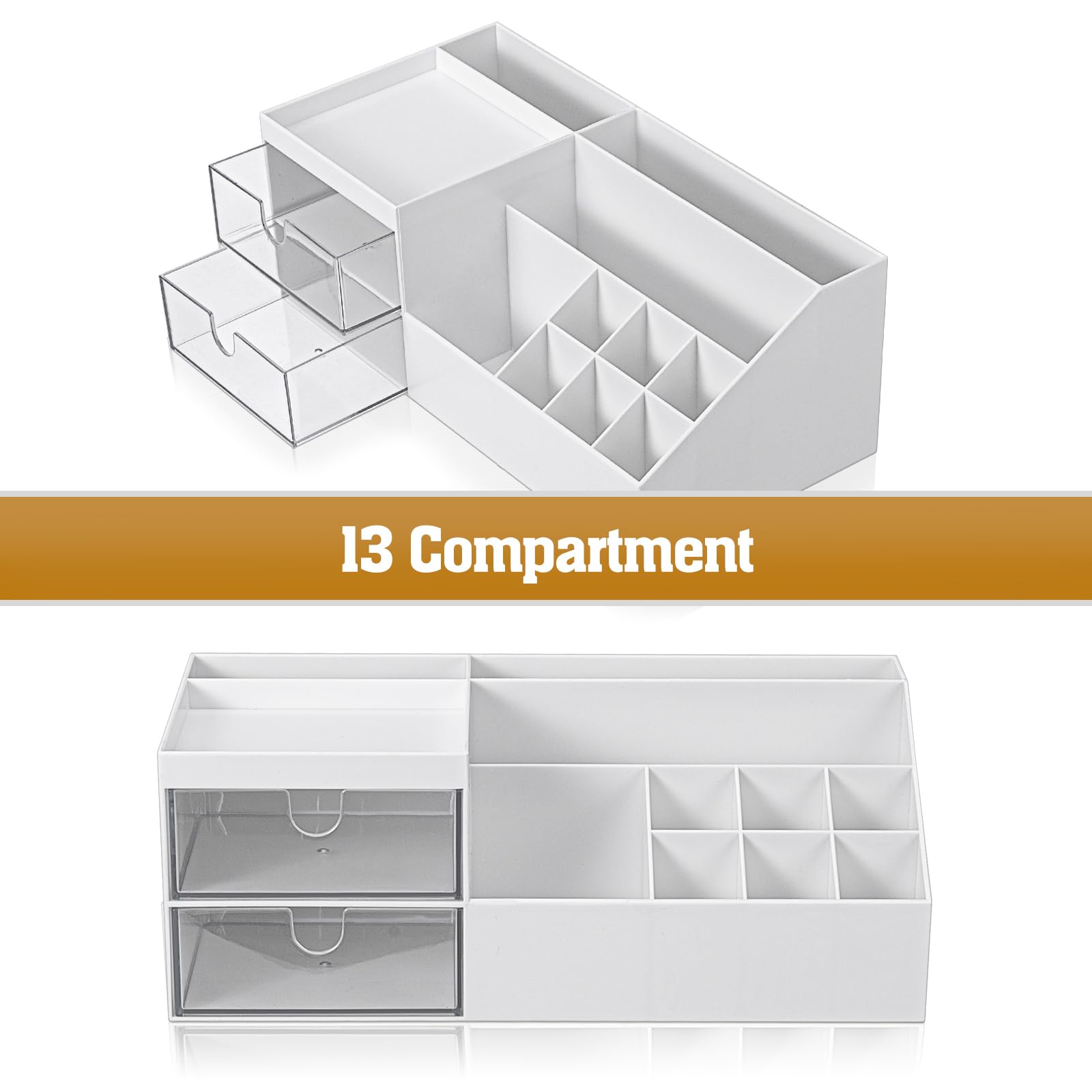 Der MumdoYAL Make-up Organizer mit Schubladen ist eine elegante und funktionale Loesung zur uebersichtlichen Aufbewahrung von Make-up, Kosmetik und Beauty-Zubehoer. Dieser praktische Schminktisch Organizer eignet sich ideal fuer den Einsatz auf dem Dresser, im Badezimmer oder im Schlafzimmer und sorgt fuer Ordnung sowie einen aufgeraumten Look.