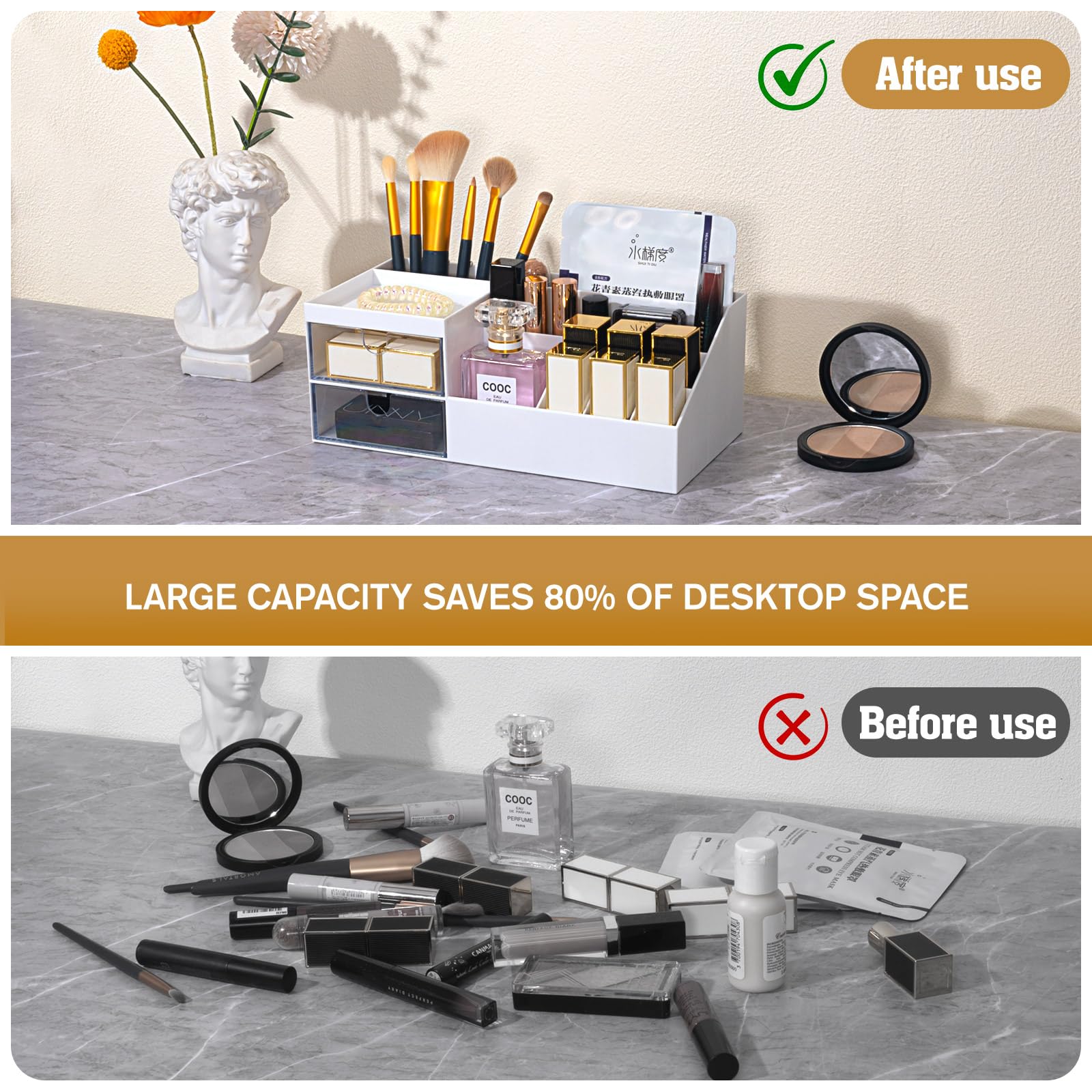 MumdoYAL Make Up Organizer,Schminktisch Organizer,Kosmetik Organizer with Drawers, Makeup Organizers for Dresser, Bathroom,Bedroom