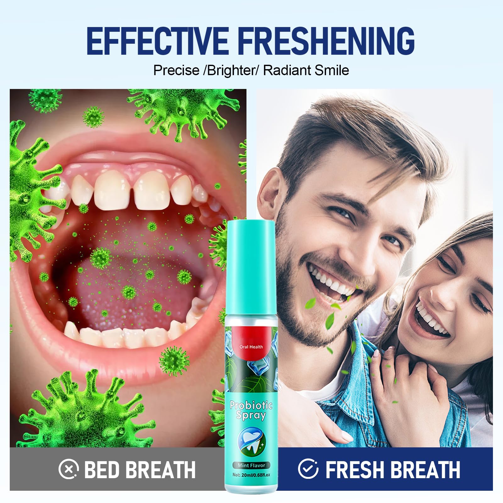 Mundspray gegen Mundgeruch, Atemerfrischer mit Fruchtgeschmack – Tragbares Mundspray mit Minzenaroma für frischen Atem unterwegs, 20 ml