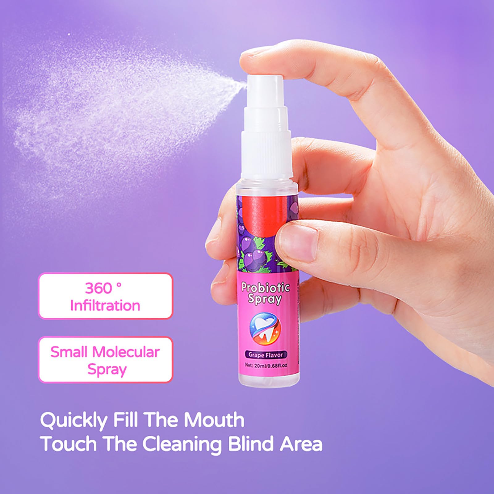 Mundspray Gegen Mundgeruch,Mundspray,Gegen Mundgeruch Und Karies,Traube Mundspray,FüR Nachhaltig Frischen Atem-Wie Mundwasser Zum Mitnehmen(20ml)