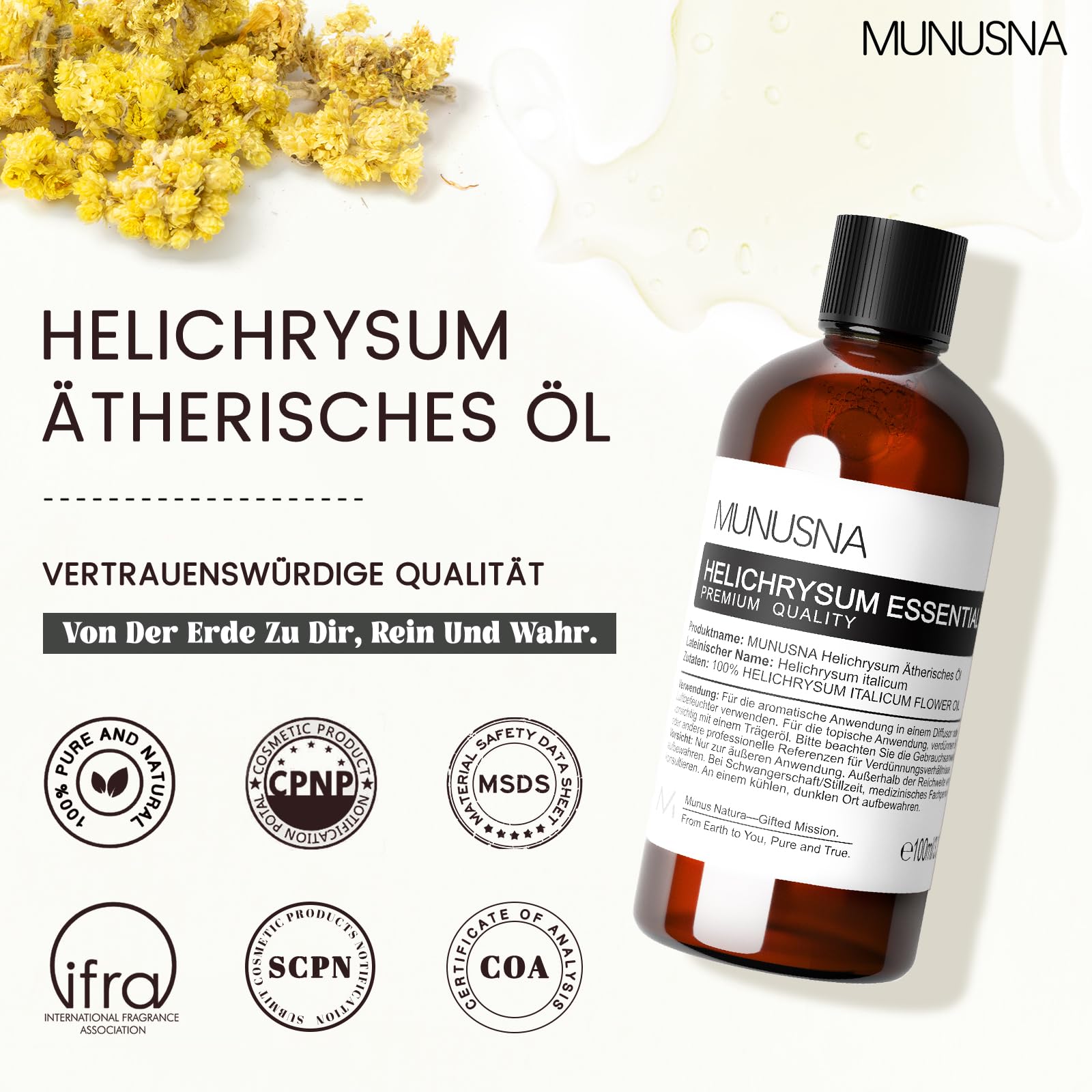 MUNUSNA Helichrysum Öl – Reines ätherisches Immortelle-Öl für Diffuser & DIY-Anwendungen, 100 ml