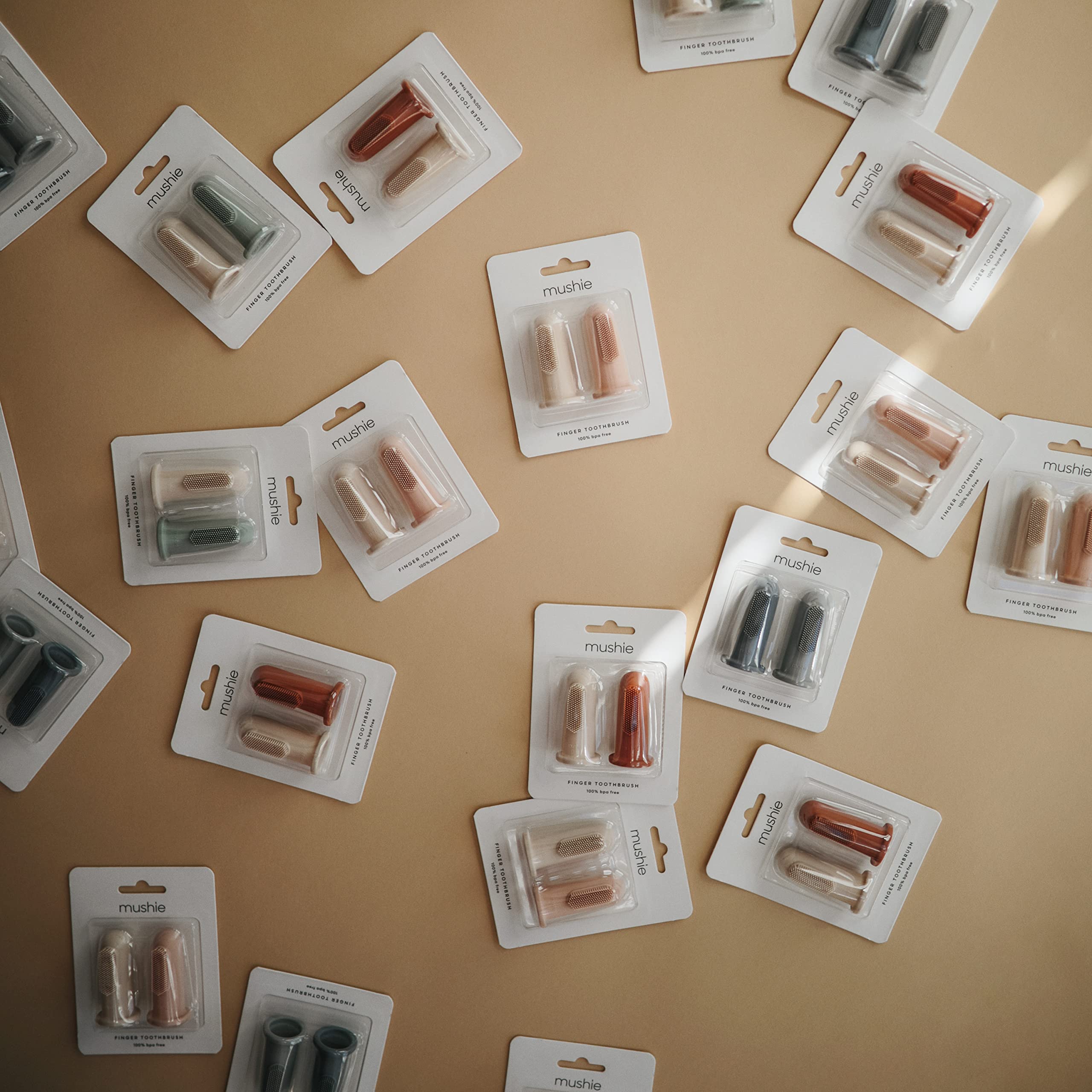• Bürsten Sie mit einer Fingerzahnbürste von Mushie Bakterien vom Zahnfleisch Ihres Babys!