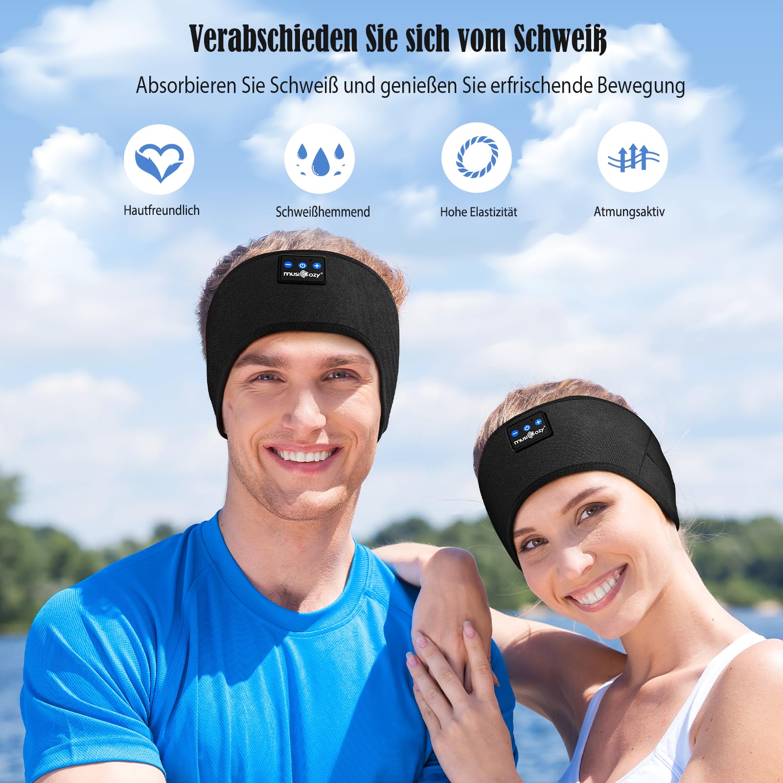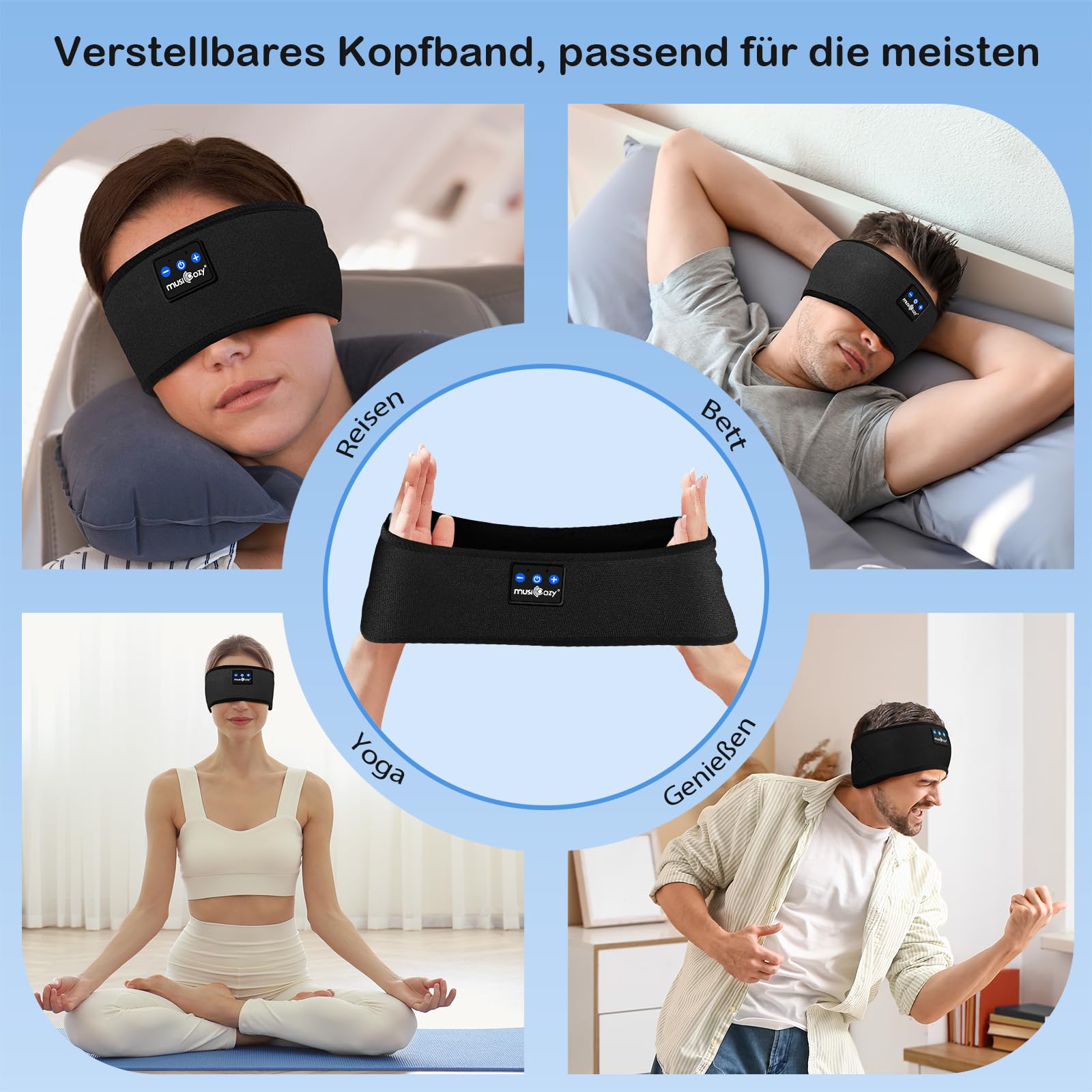 MUSICOZY Schlafkopfhörer Bluetooth, Schlaf Kopfhörer Seitenschläfer Kabellos Sport Kopfhörer Stirnband 16+STD für Yoga/Training/Reisen/Schlaflosigkeit,Tech Gadgets für Männer/Frauen