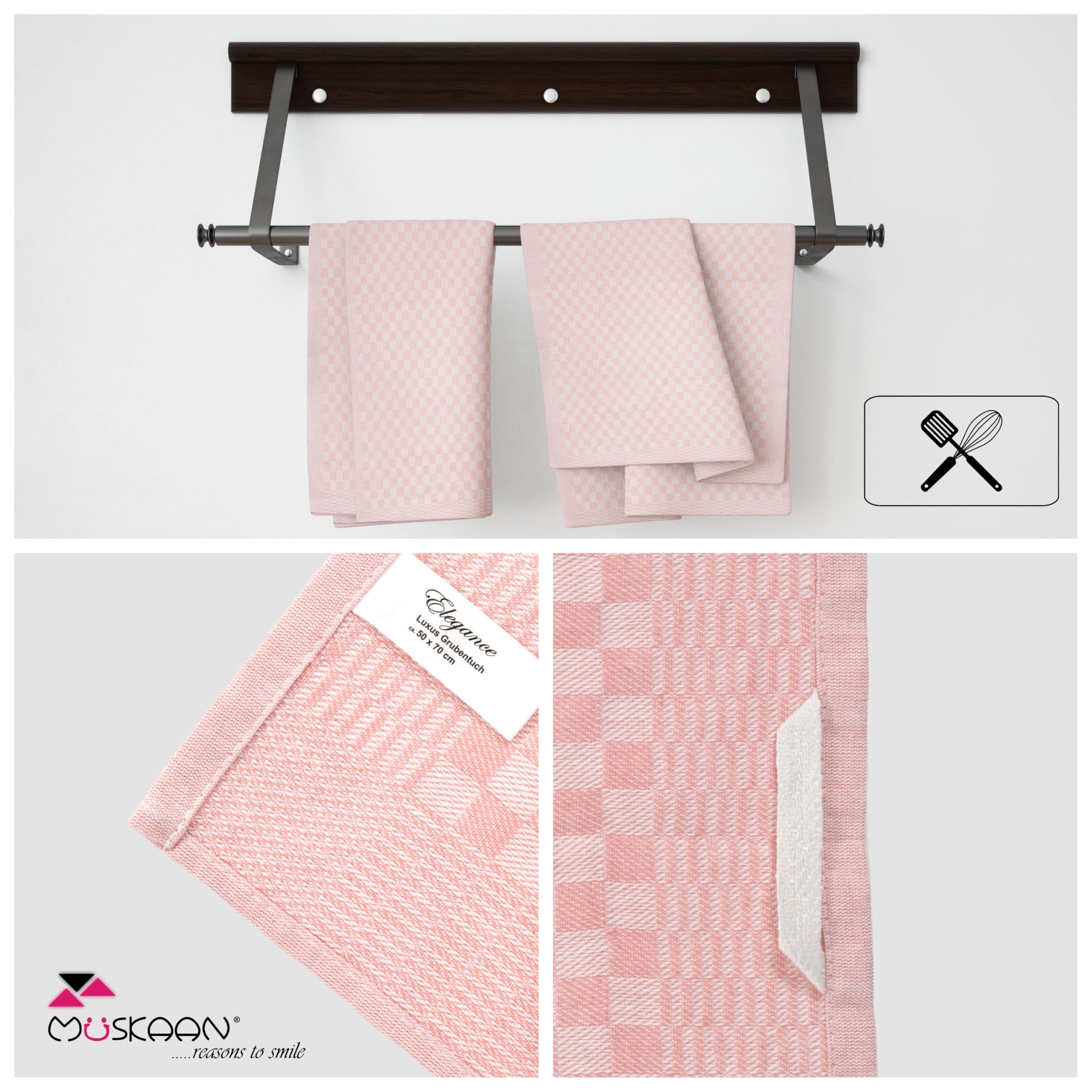 Müskaan 10er Set Geschirrtücher 50x70cm, 100% Baumwolle, Rosé – 210 g/m², Küchenhandtücher, Grubentücher zum Putzen, Fusselfrei Geschirrhandtücher, Küchentücher saugstark, Geschirrtuch Rosa