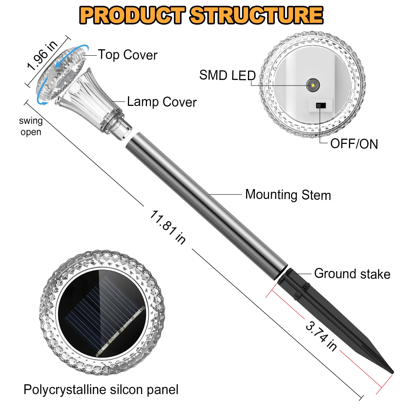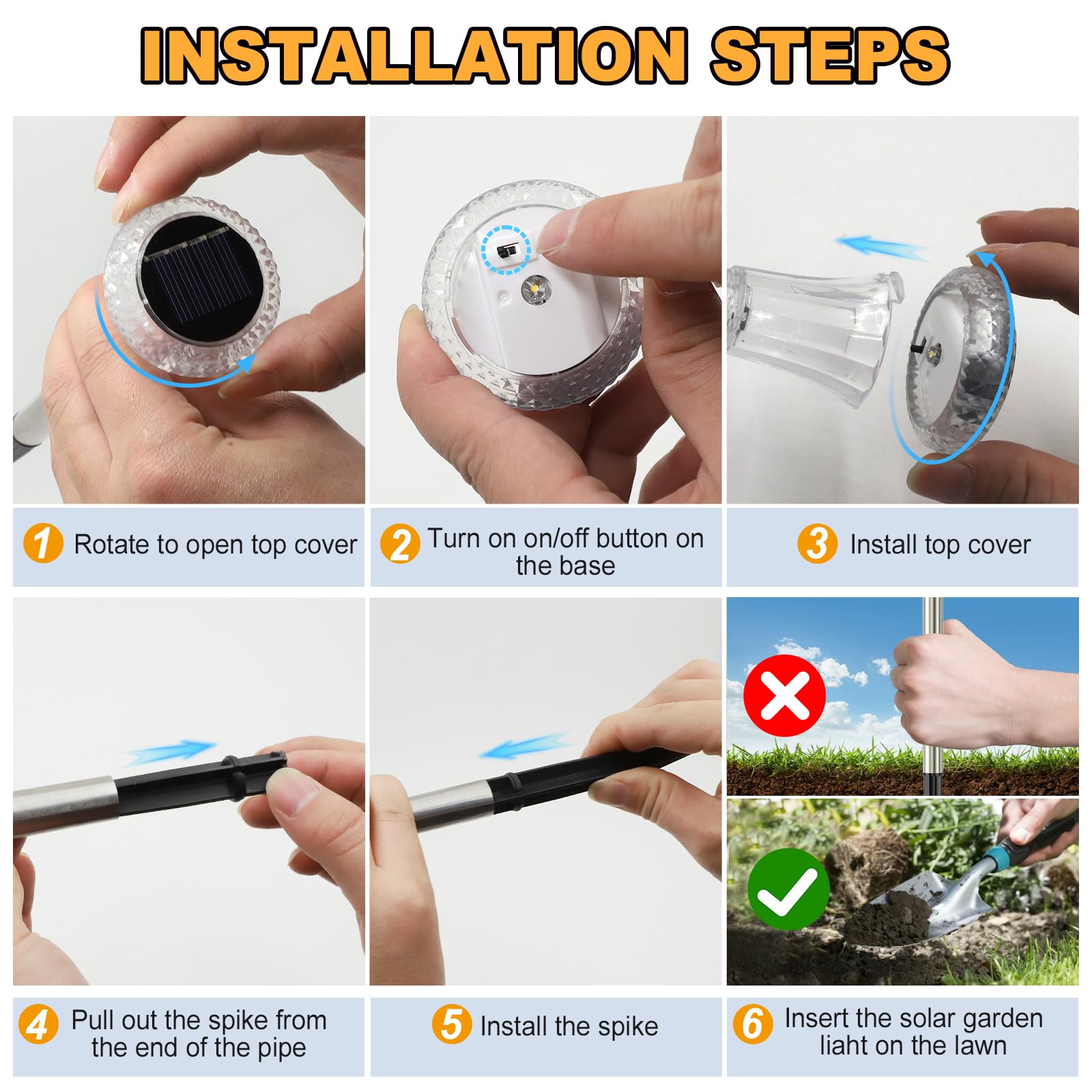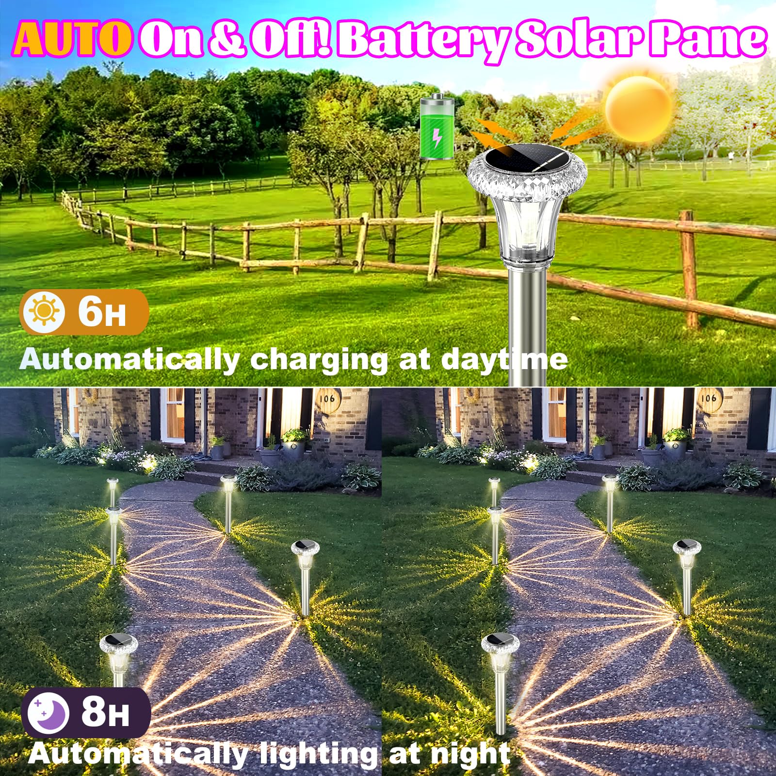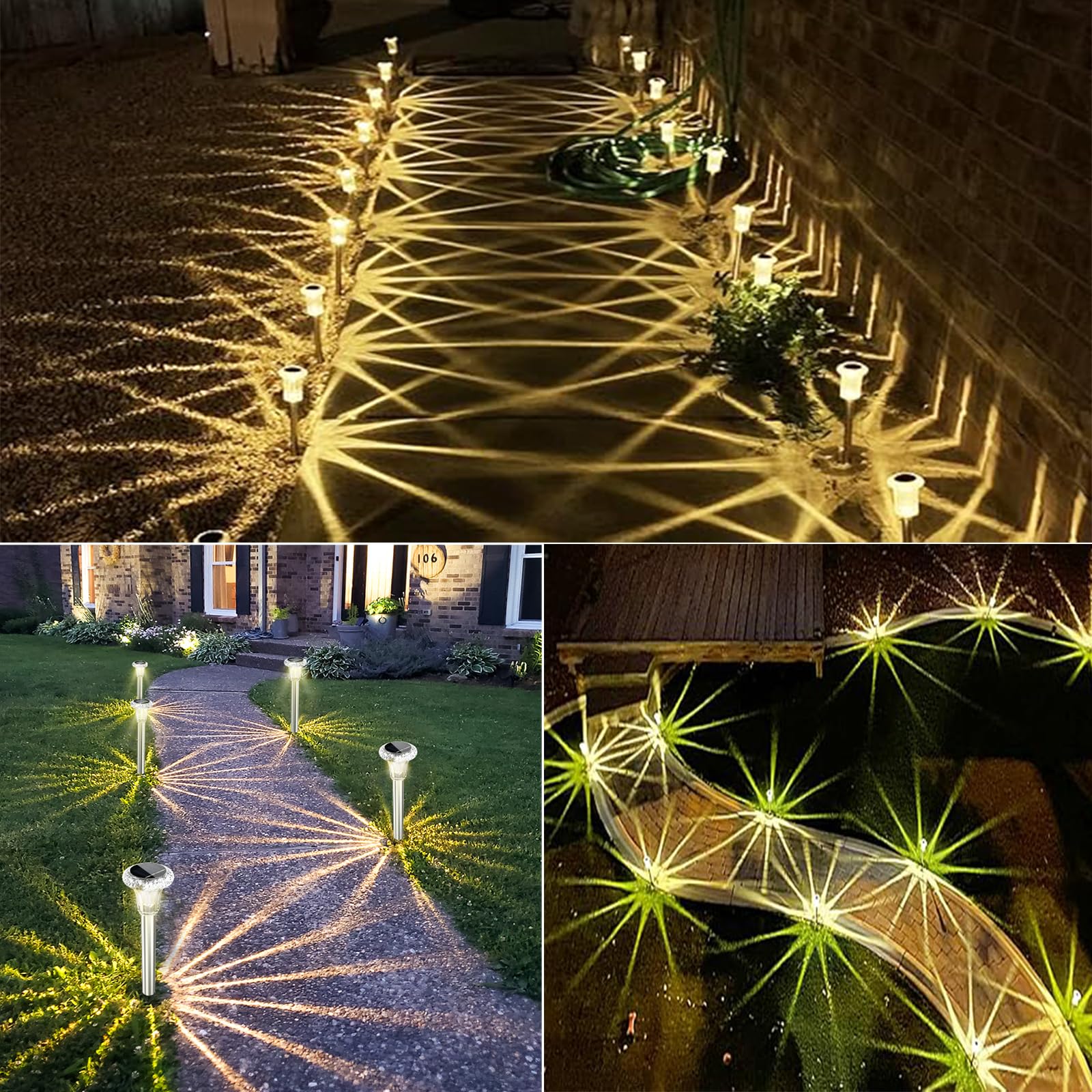 MUSUNIA Solarleuchten für Aussenbereich – IP65 wasserdichte Solar Wegleuchten aus Edelstahl für Garten, Terrasse, Rasen, Gehweg und Landschaftsgestaltung Warmweiss (6er-Pack)