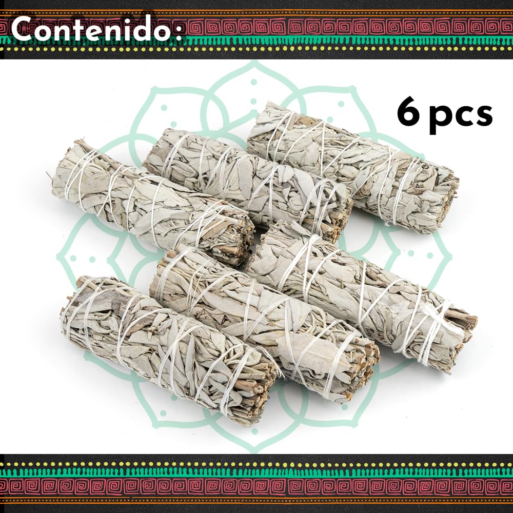 MUT22 6 Weisser Salbei Premium Kalifornischer, 100% natürlich und reinigend, ideal für spirituelle und energetische Rituale Liés Salvia Apiana Blanc (6 Weisser Salbei)