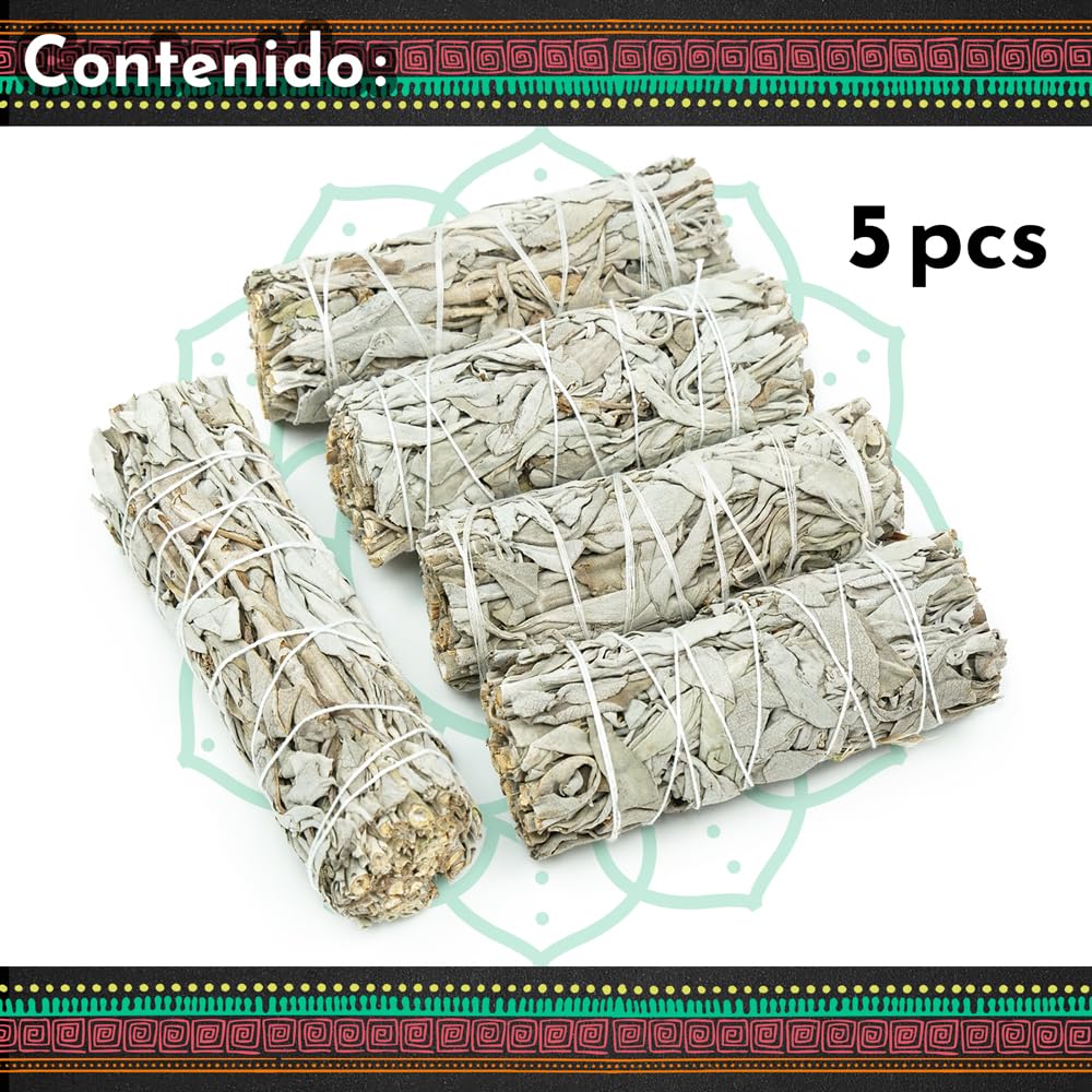 MUT22 5 Weisser Salbei 10 cm Premium Kalifornischer, 100% natürlich und reinigend, ideal für spirituelle und energetische Rituale