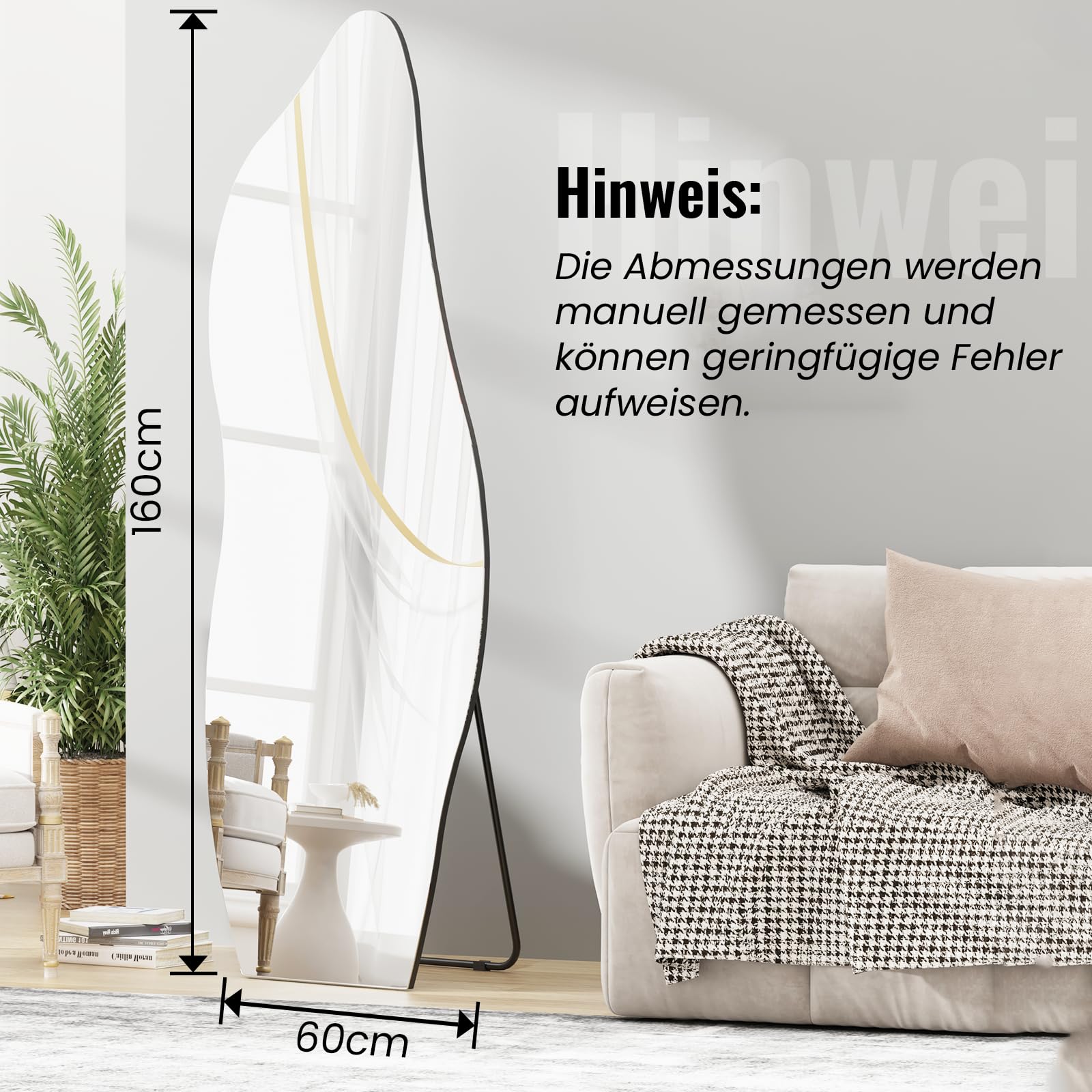 Muzilife 160x60cm Asymmetrischer Standspiegel Ganzkörperspiegel, Rahmenloser Spiegel Unregelmässiger Grosser Wandspiegel mit MDF-Rückwand, Deko für Wohnzimmer Flur Eingang Wand