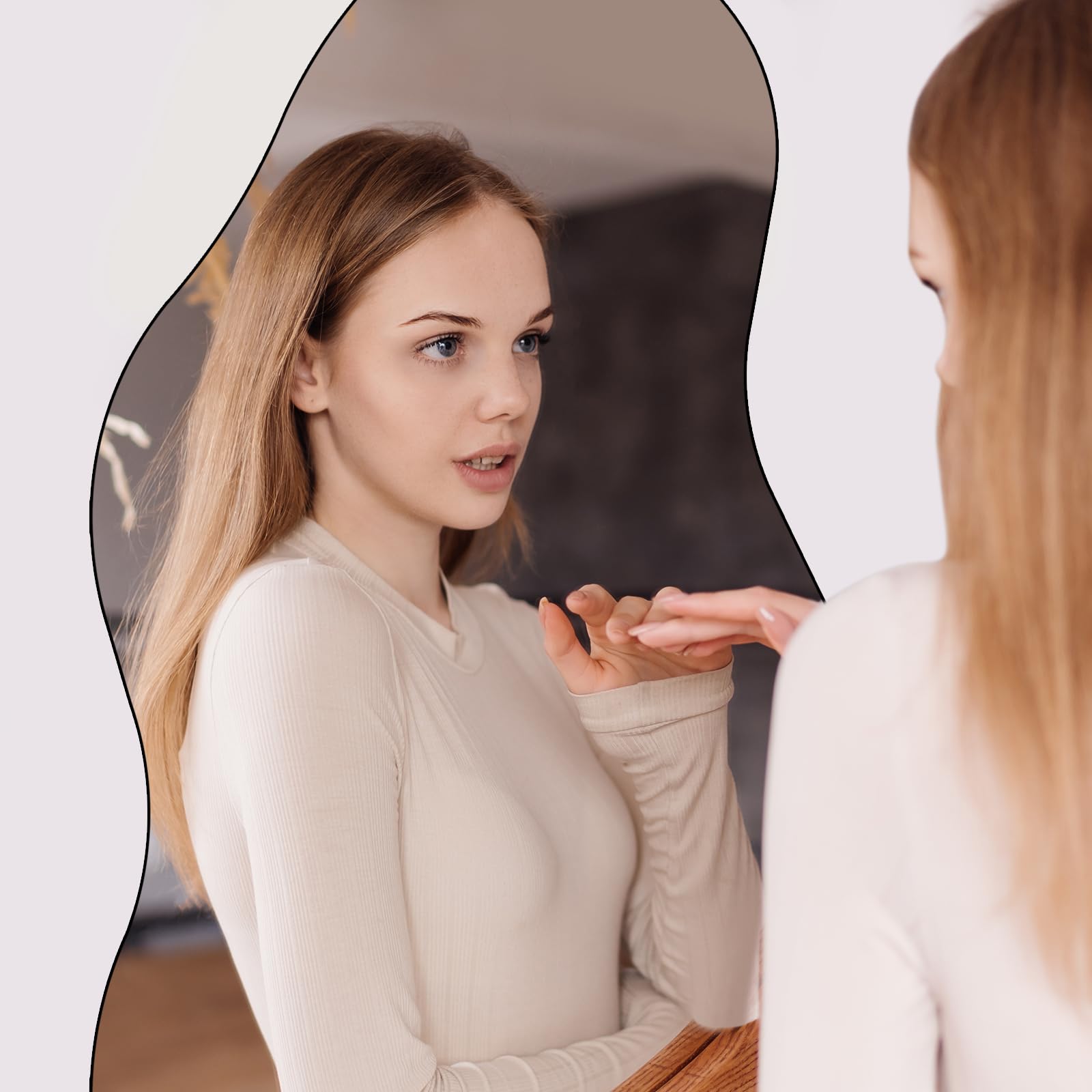 Die asymmetrischen Spiegel von Muzilife sind modern und künstlerisch, was sie zur perfekten künstlerischen Präsentation für Ihr Zuhause macht. Die einzigartige Form verleiht jedem Raum eine helle Atmosphäre und fügt sich als schöne Dekoration in jede Ecke ein.Muzilife-Wandspiegel sind einfach zu installieren und werden mit einem kompletten Satz Montagematerial geliefert. Der Haken auf der Rückseite ist stark genug, um den Spiegel sicher an der Wand aufzuhängen.Ideal als dekorativer Spiegel für Wohnzimmer, Schlafzimmer, Badezimmer, Garderoben, Hotels, Galerien, Eingangsbereiche, Flure, Salons und Geschäfte. Es ist auch das beste Geschenk für Ihren Partner, Ihre Familie, Freunde und Kollegen