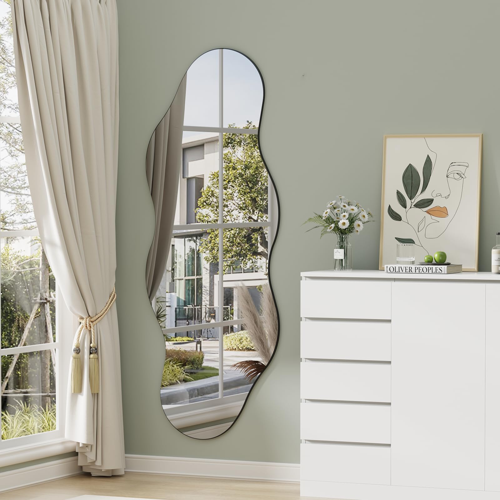 Muzilife Asymetrischer Spiegel Ganzkörperspiegel 160x60cm, Unregelmässiger Grosser Wandspiegel mit MDF-Rückwand, Dekorativer Spiegel für Wand Wohnzimmer Bad Flur Eingang, Deko (Wolkenform)