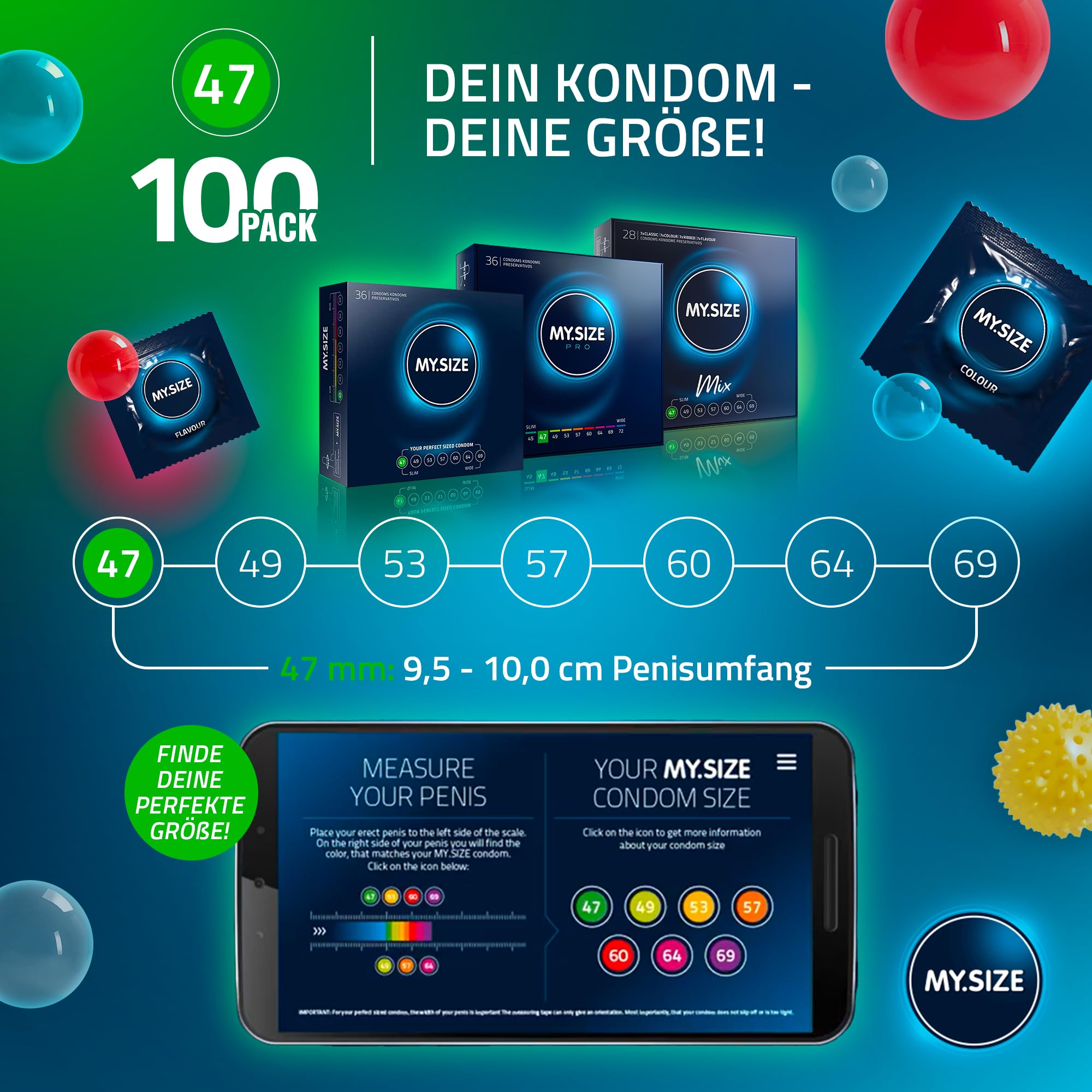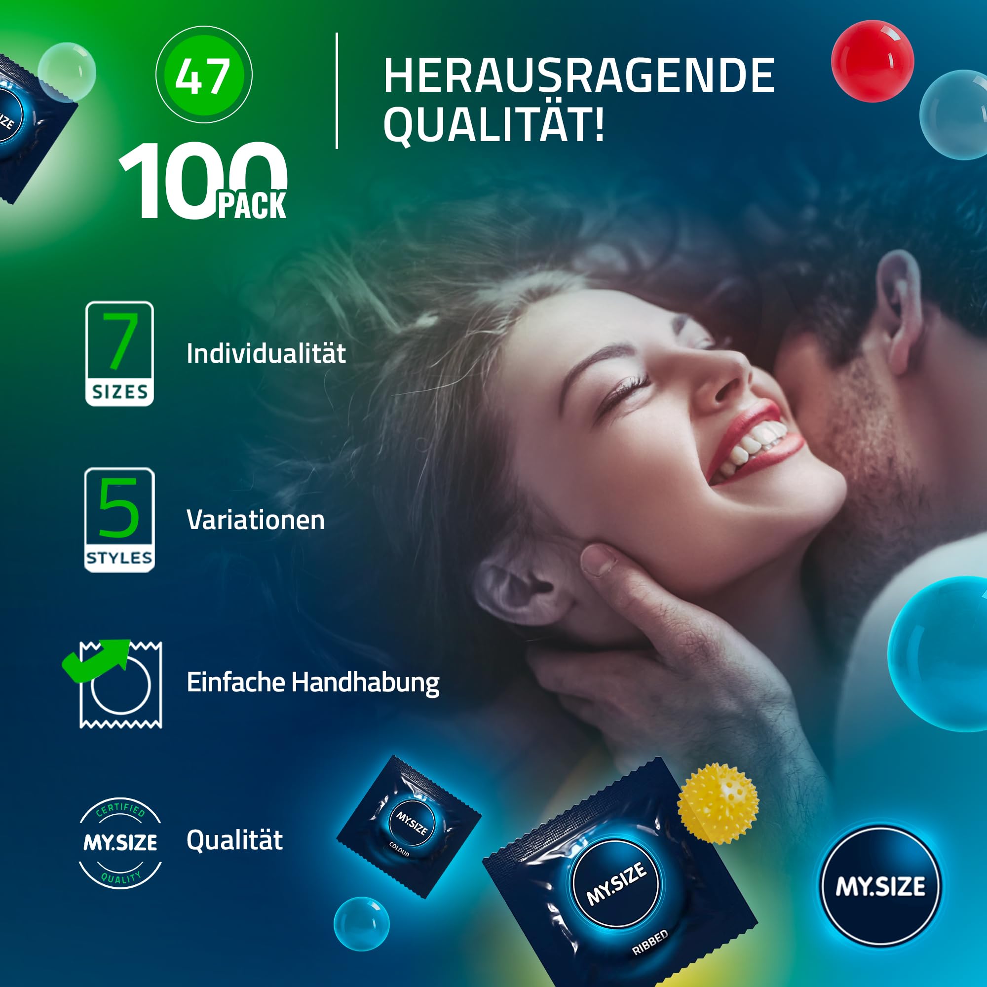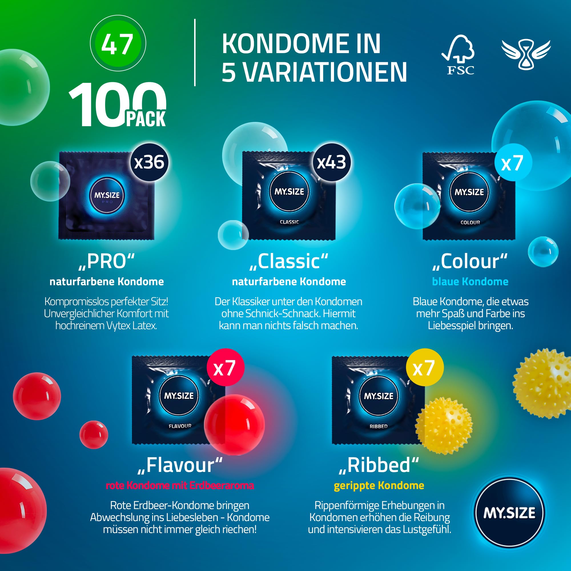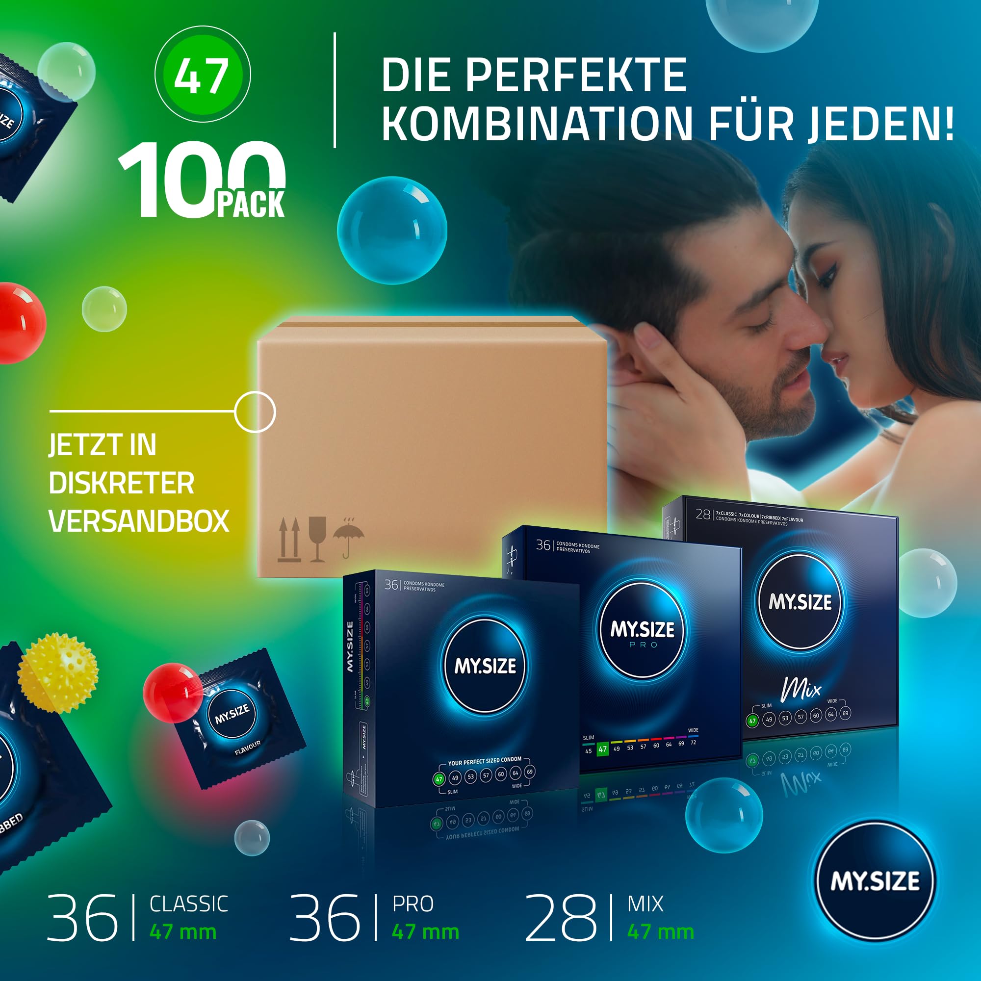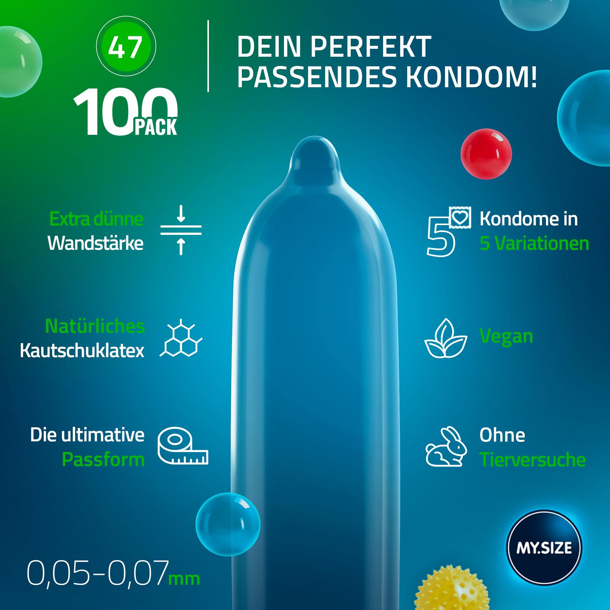 MY.SIZE 100 Kondome 47 mm Megaset Classic + Mix + Pro I Grösse 1 I 100 Stück Sparpackung I Premium Kondom extra dünn I dünne Wandstärke I Kondome vegan I Condoms for men