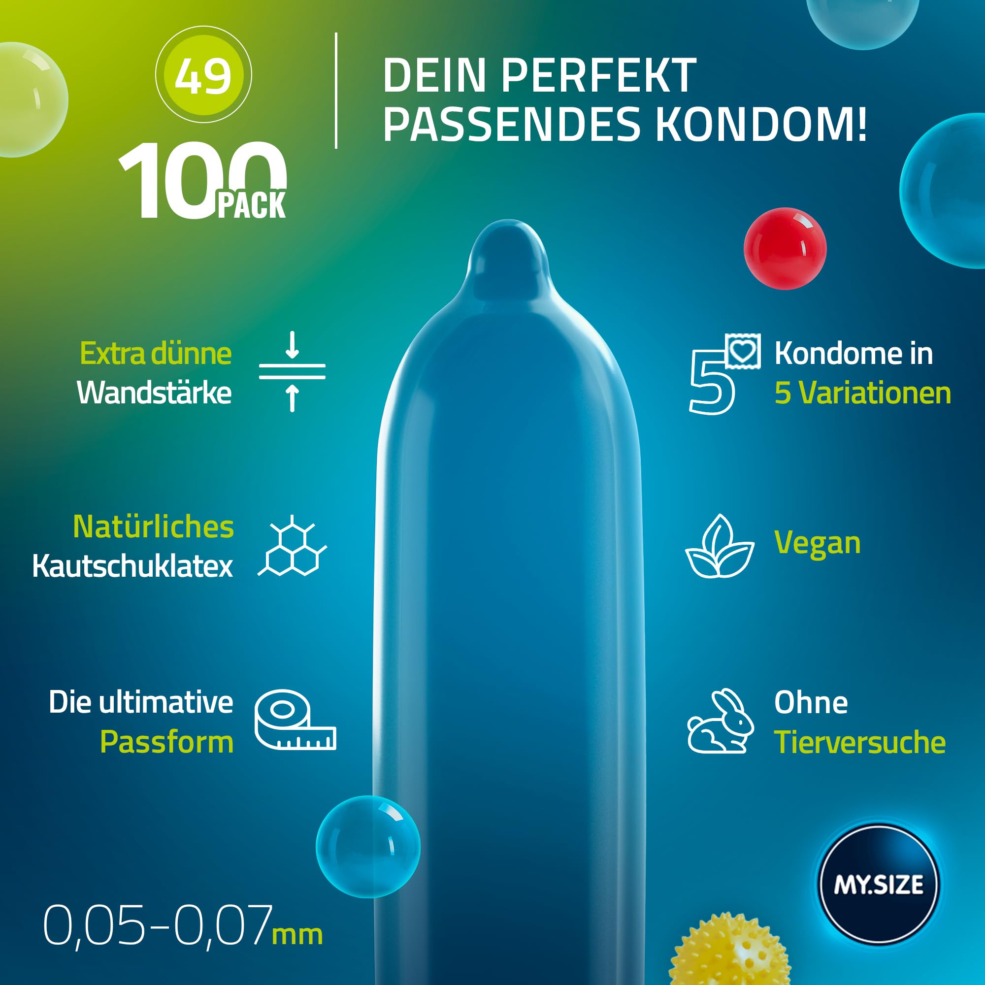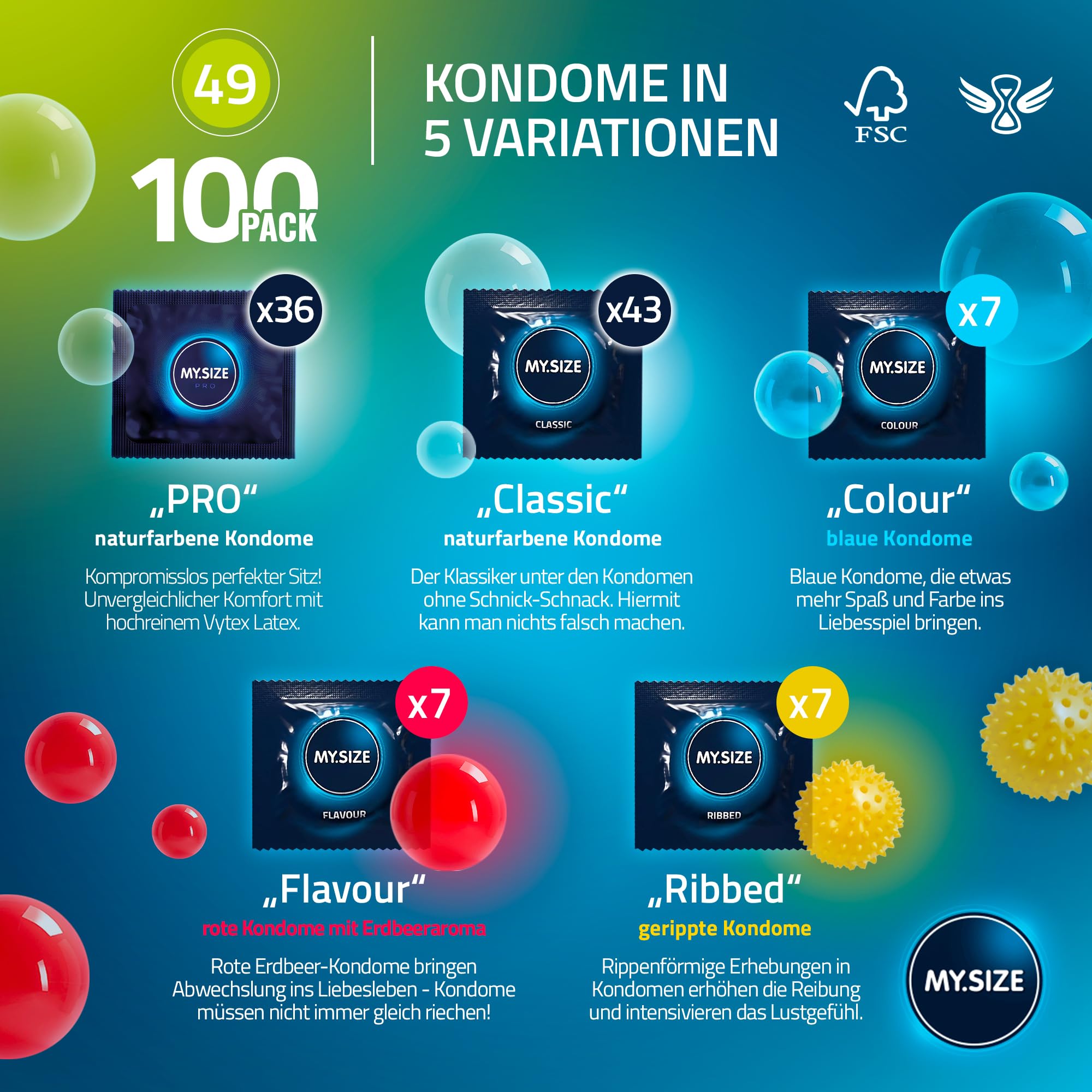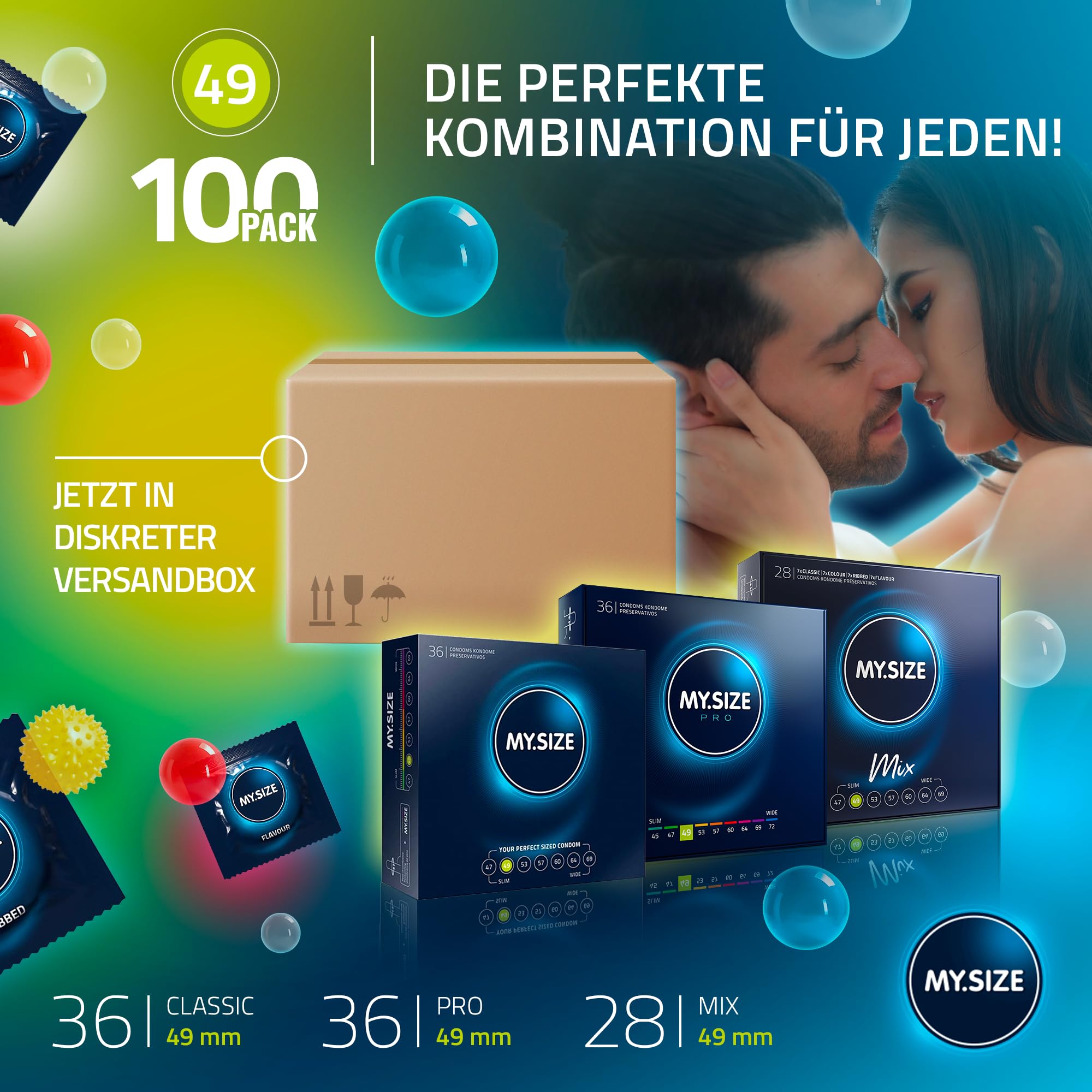 MY.SIZE 100 Kondome 49 mm Megaset Classic + Mix + Pro | Grösse 2 | 100 Stück Sparpackung | Premium Kondom extra dünn | gefühlsecht hauchzart | dünne Wandstärke