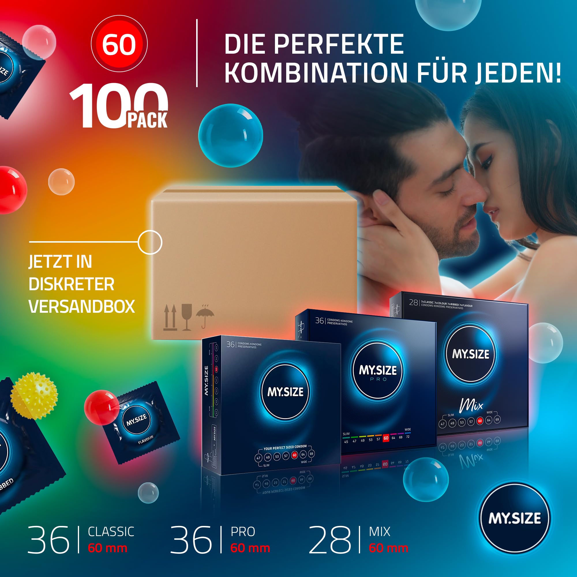 MY.SIZE 100 Kondome 60 mm Megaset Classic + Mix + Pro | Grösse 5 | 100 Stück Sparpackung | Premium Kondom extra dünn | gefühlsecht hauchzart | dünne Wandstärke