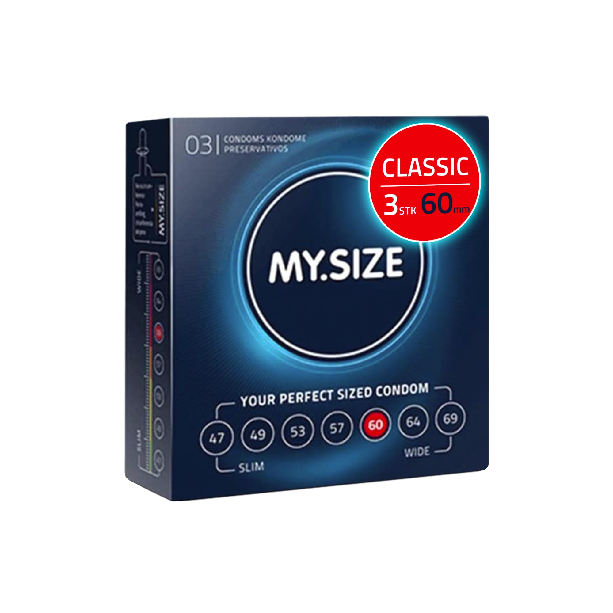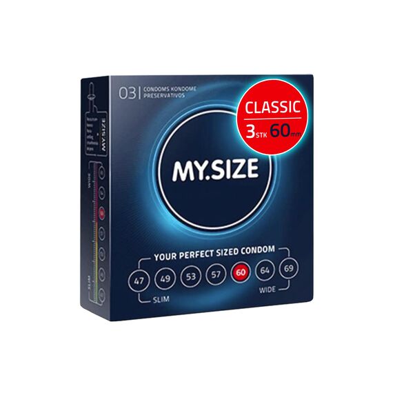 MY.SIZE Classic Kondome Grösse 5 | 60 mm Breite | 3 Stück Probierpackung | Premium extra dünn | gefühlsecht hauchzart | dünne 0,07 mm Wandstärke