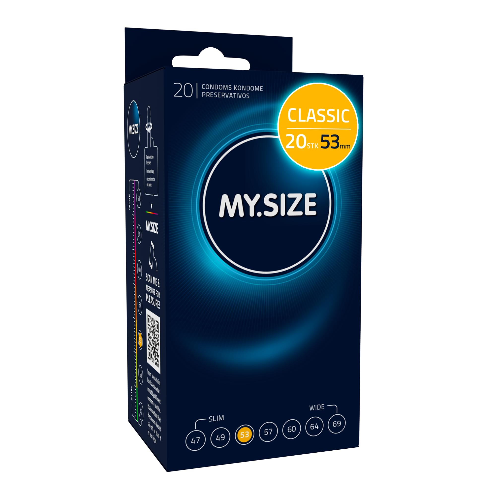 MY.SIZE Classic Kondome, 53 mm Größe 3, 20 Stück Maxipack, extra dünn (0,07 mm)