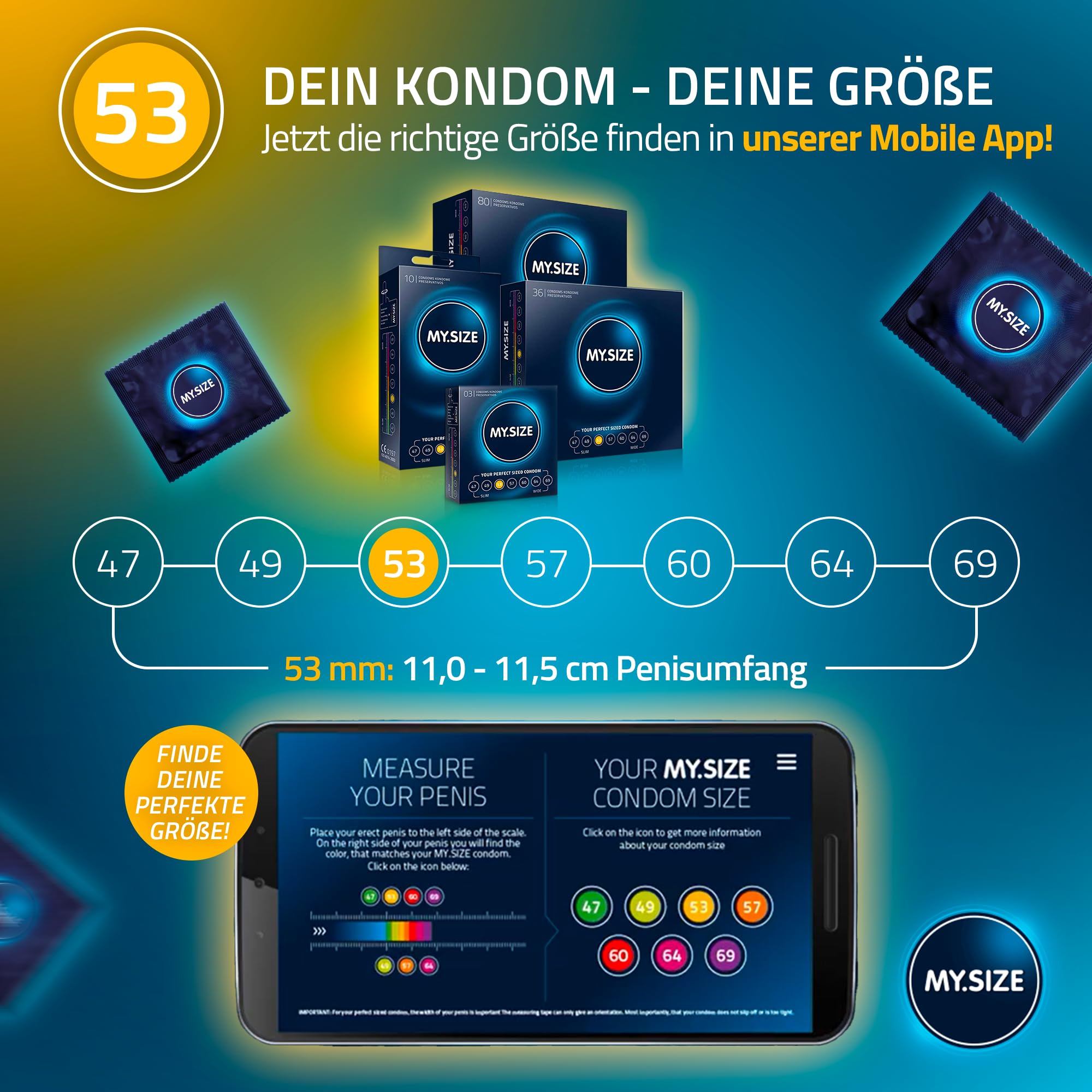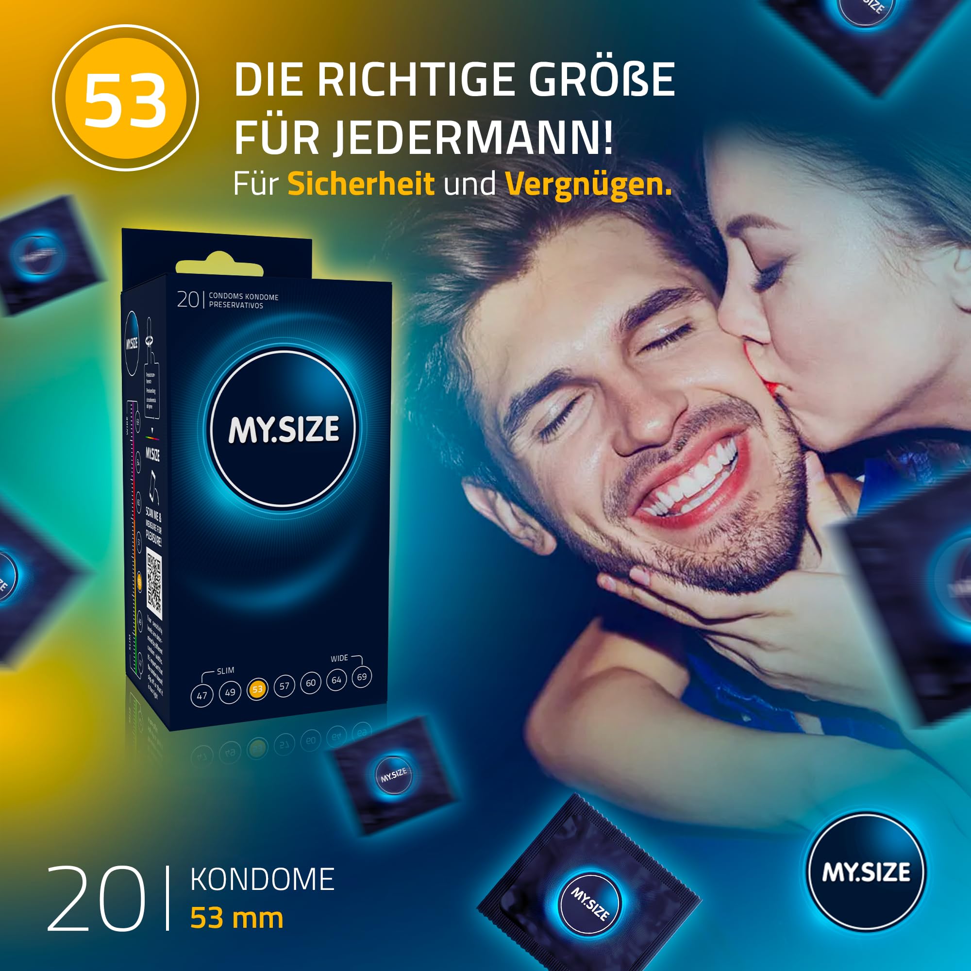 • Der Deal: MY.SIZE Kondom, Breite 53mm, 20 Stück. Erhältlich in weiteren nominalen Breiten.