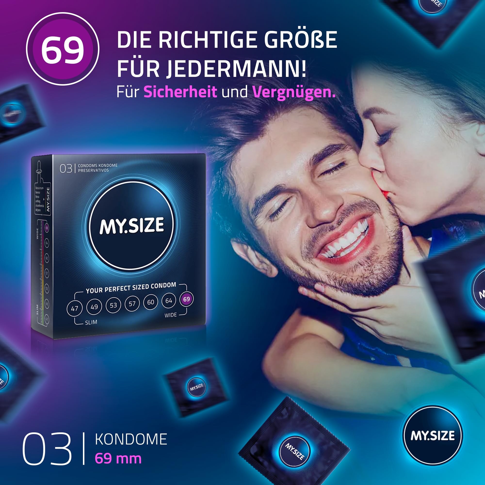 MY.SIZE Classic Kondome Grösse 7 | 69 mm Breite | 3 Stück Probierpackung | extra dünn | gefühlsecht hauchzart | dünne 0,07 mm Wandstärke