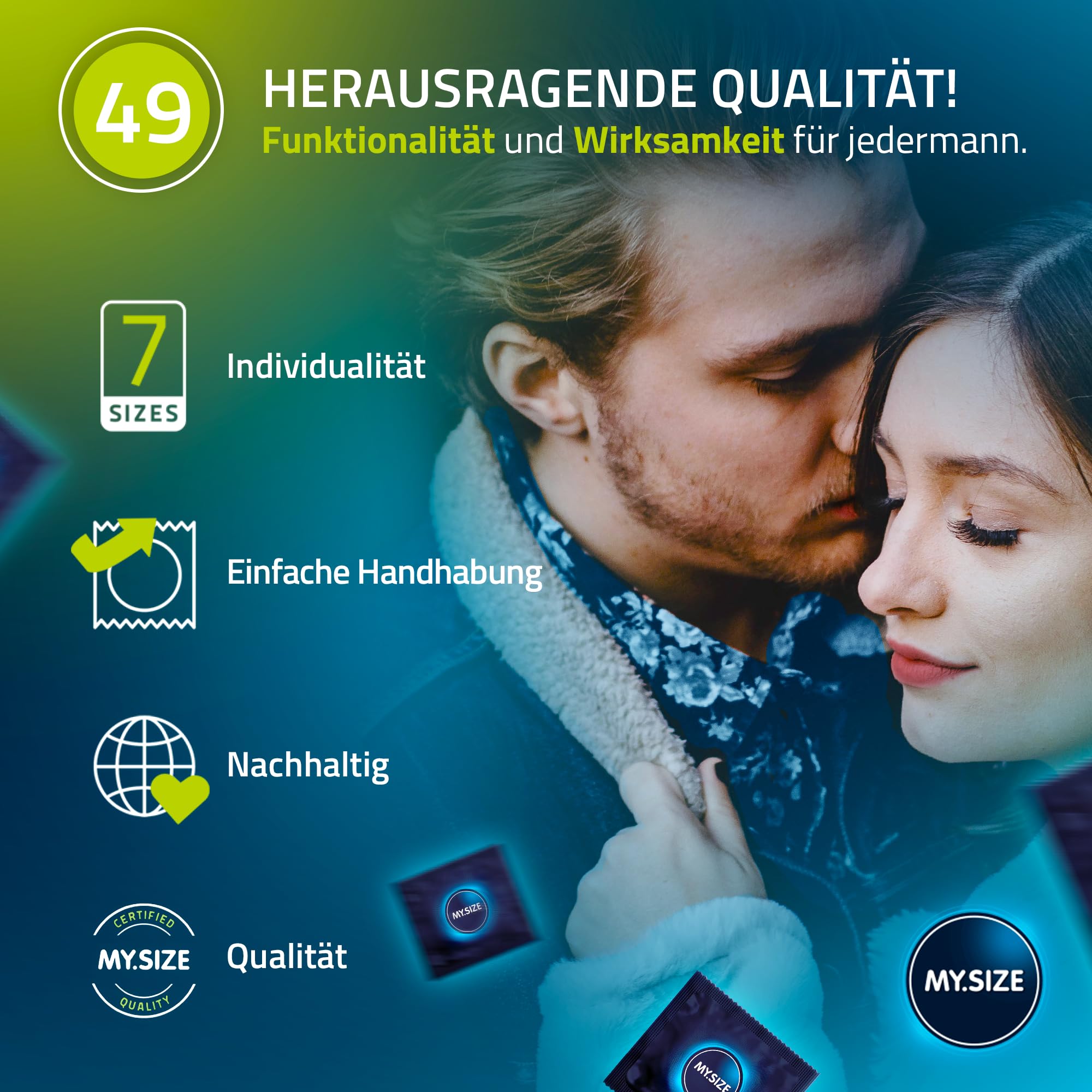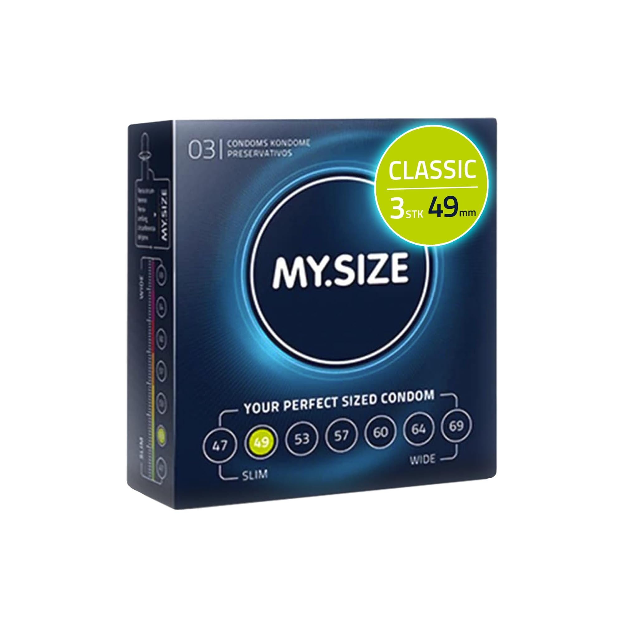 MY.SIZE Classic Kondome Grösse 2 | 49 mm Breite | 3 Stück Probierpackung | extra dünn | gefühlsecht hauchzart | dünne 0,07 mm Wandstärke