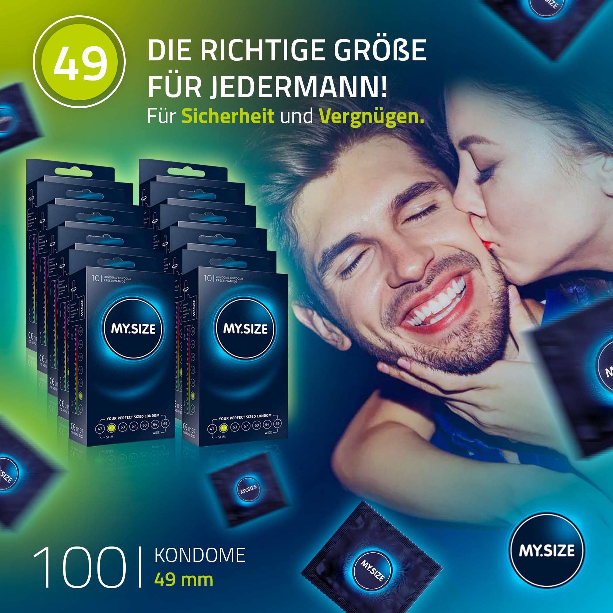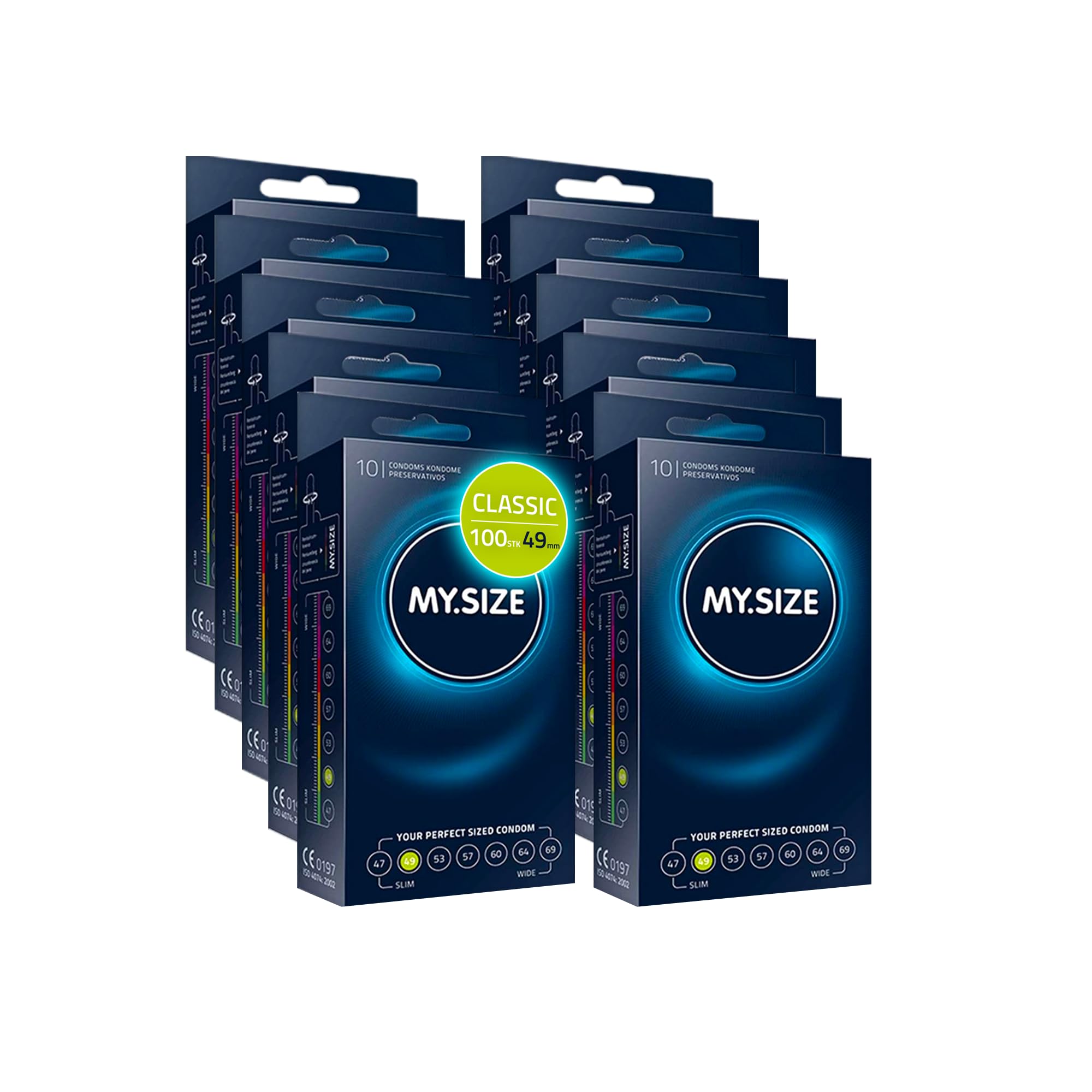 • Der Deal: MY.SIZE Kondom 100 Kondome in 10 Boxen zu je 10 Kondomen, Breite 49mm, 100 Stück. Erhältlich in weiteren nominalen Breiten.