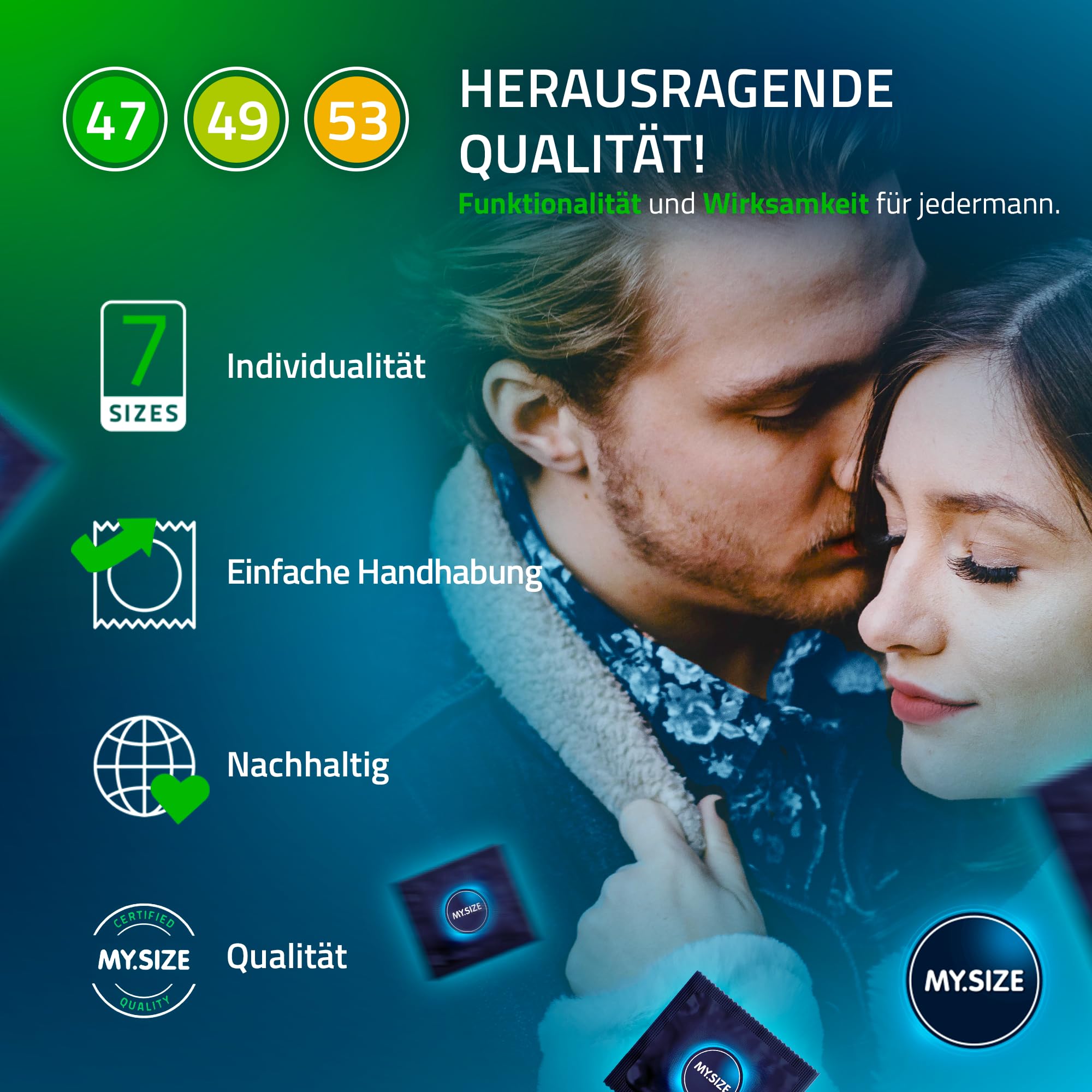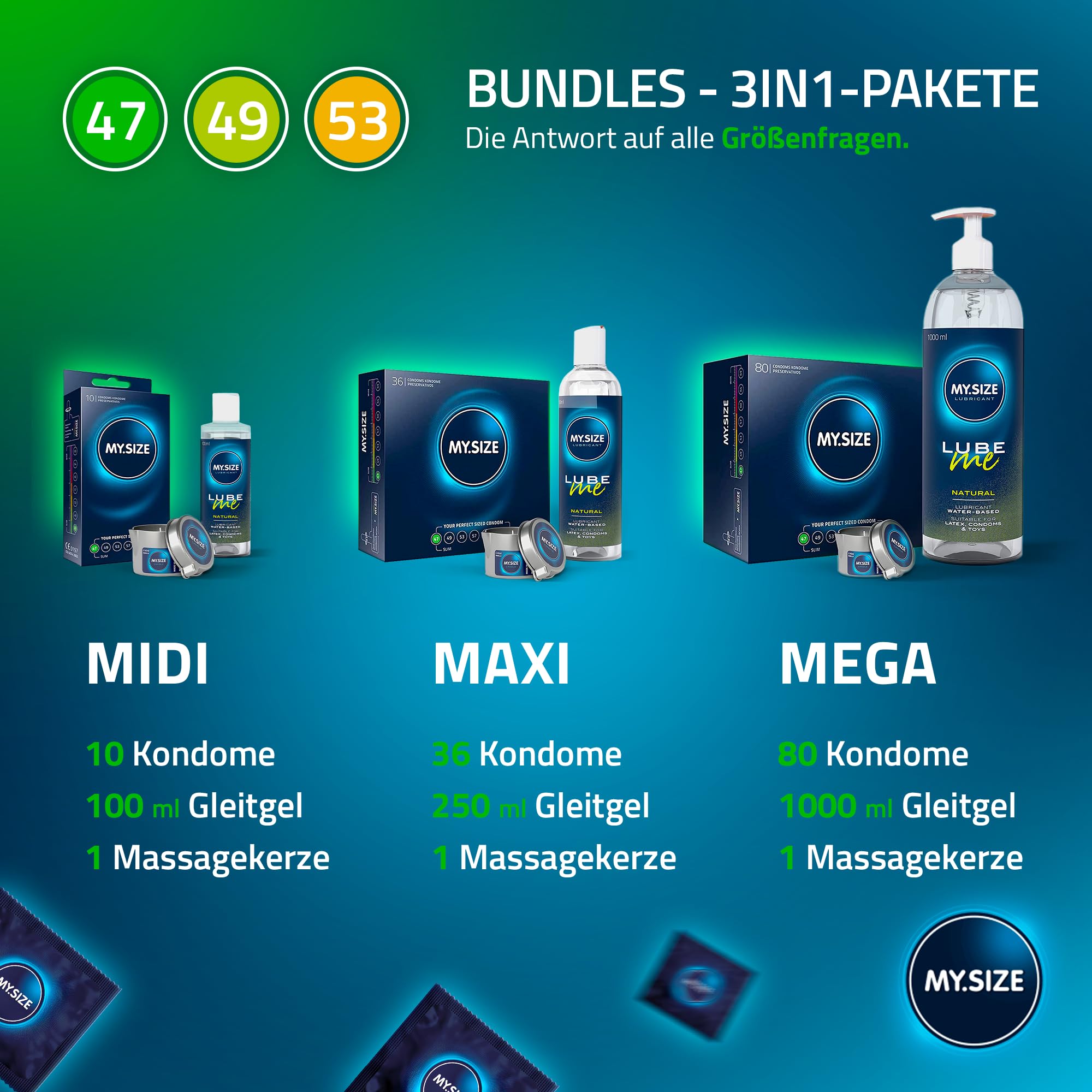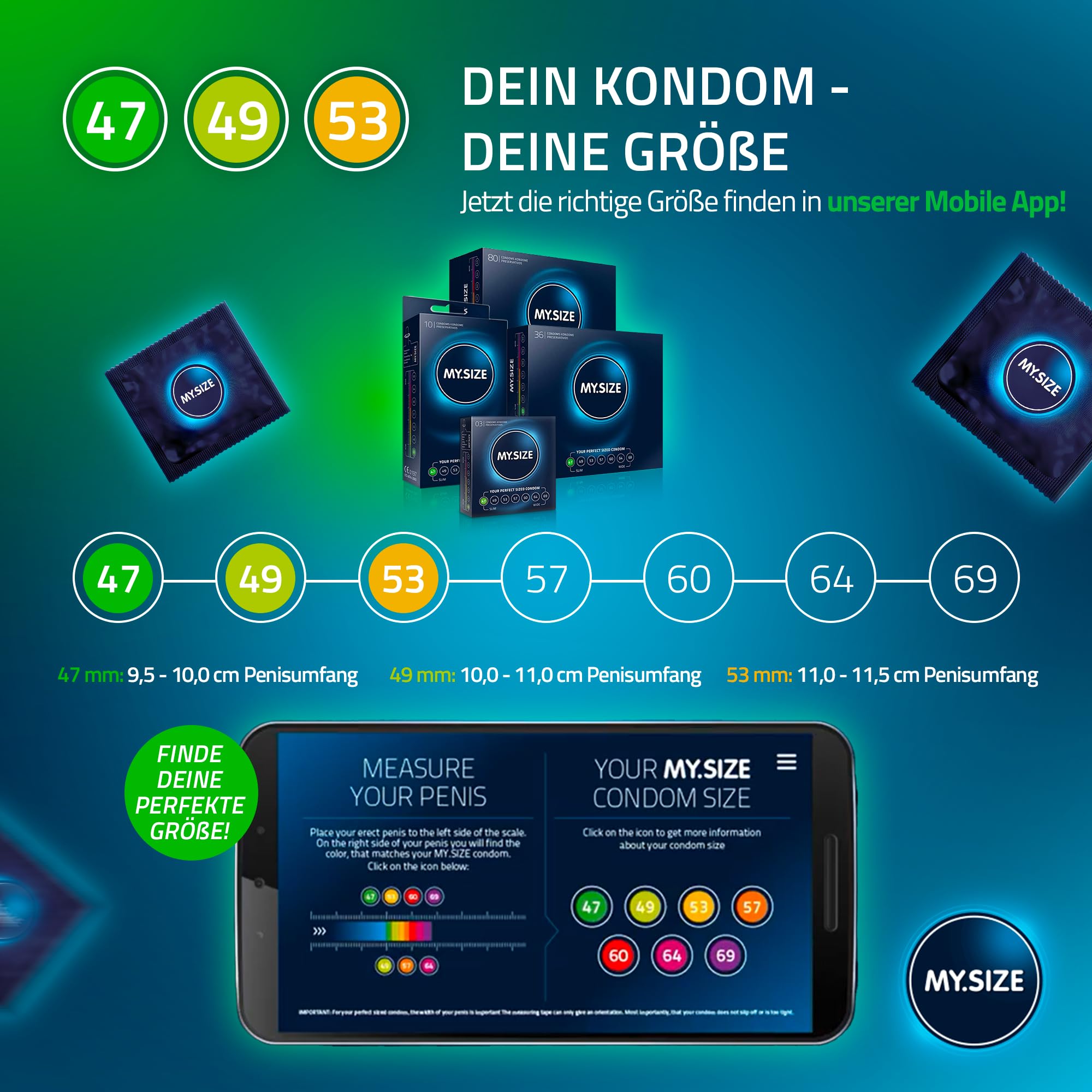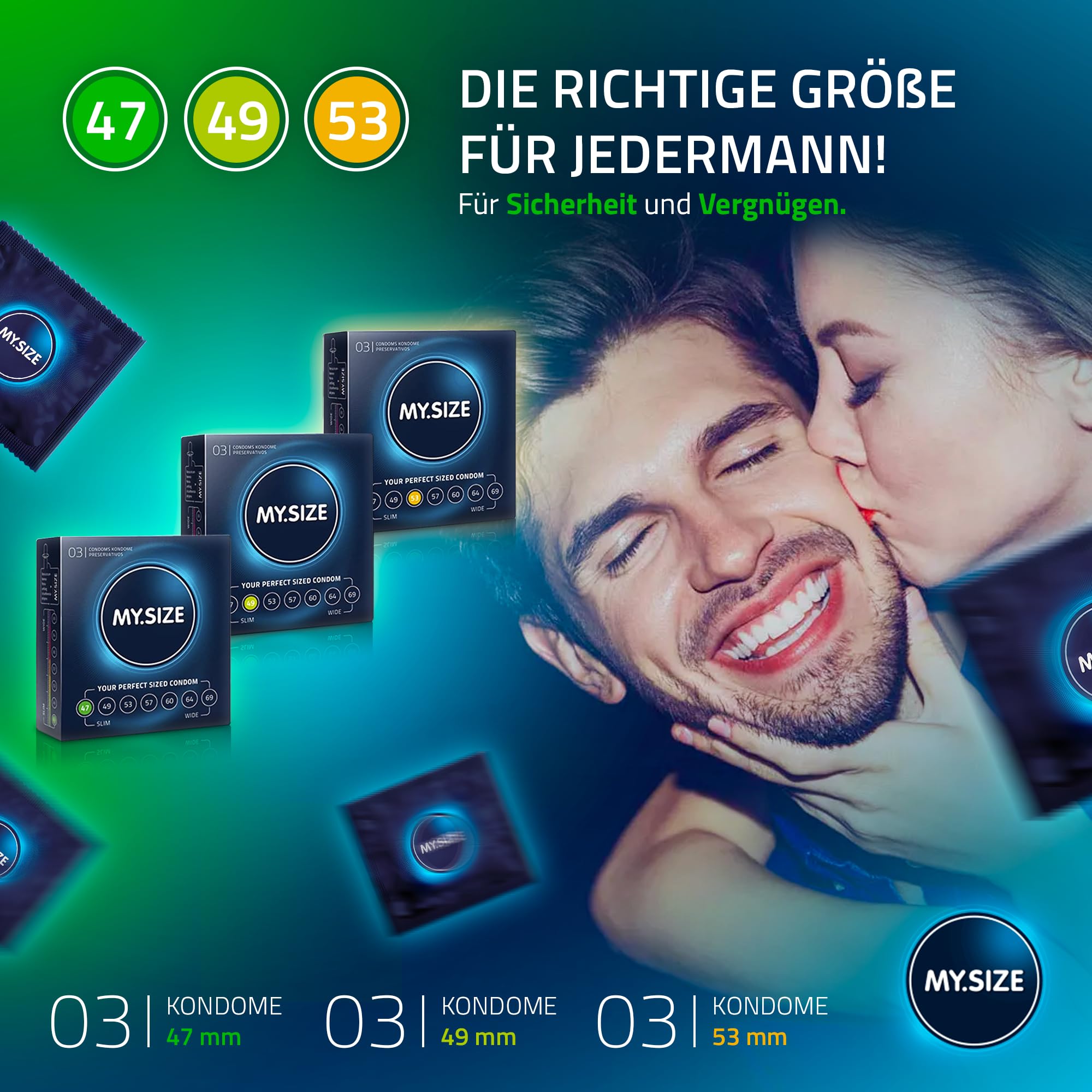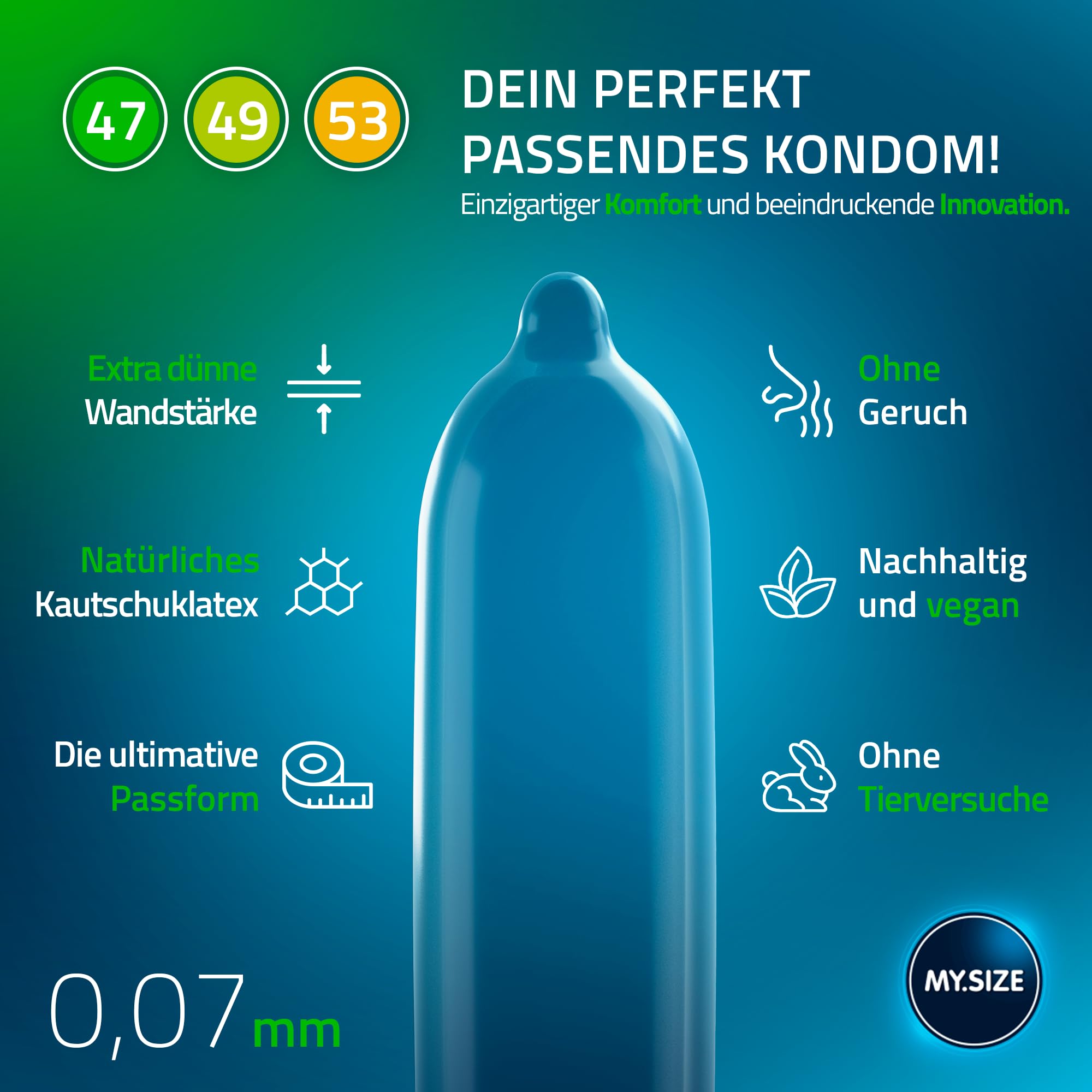 MY.SIZE Classic Kondome 3er Testpaket | 47, 49, 53 mm Breite | 3x3 Stück Premium-Condome extra dünn | mit Natürlichem Hautgefühl | Dünne Wandstärke von 0,07 mm | Vegane