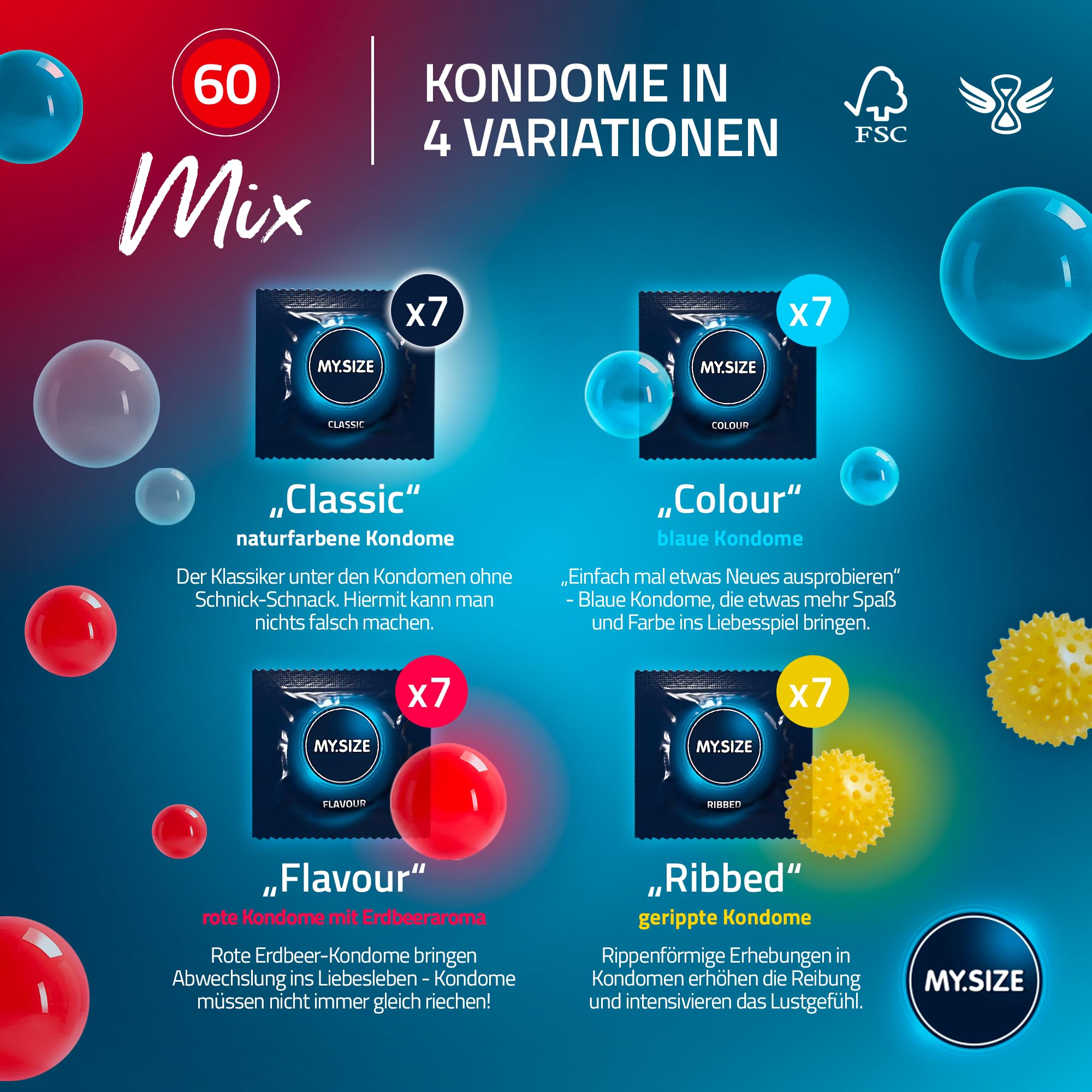My.Size Mix Kondome Grösse 5, 60 mm, Grosspackung | 28 Stück Kondome in 4 aufregenDen Sorten, mit Aroma, Farbe, Genoppt & Classic
