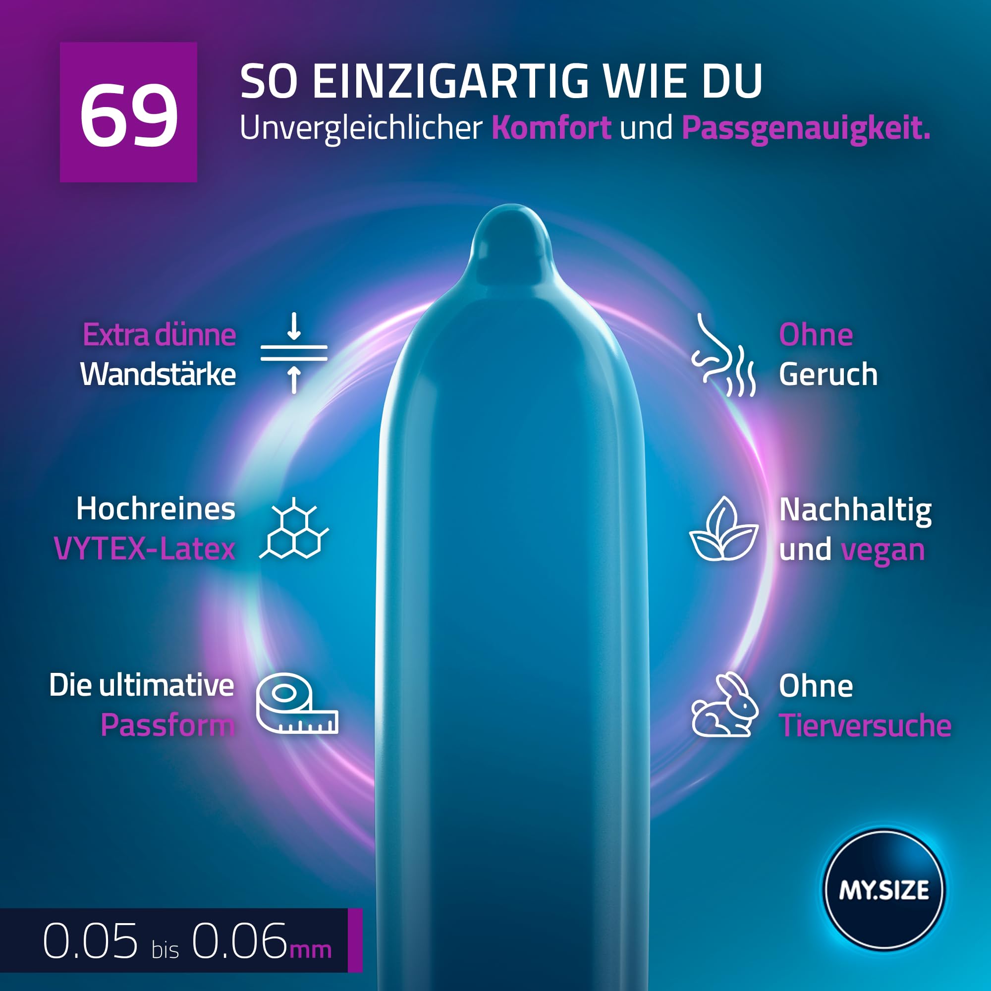 PASSENDE GRÖSSE FÜR JEDEN: Durchschnitt adé! MySize findet, es ist an der Zeit, dass die Passform für die Bekleidung des empfindsamsten Körperteils kompromisslos dem Mann angepasst wird. Für Sicherheit UND Lust.