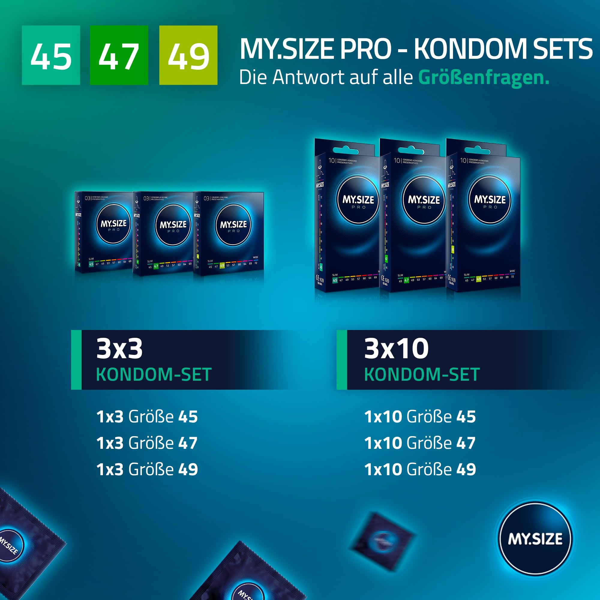 MY.SIZE PRO Kondom Set Grösse 0,1,2-45,47,49 mm, 3x10 Stück