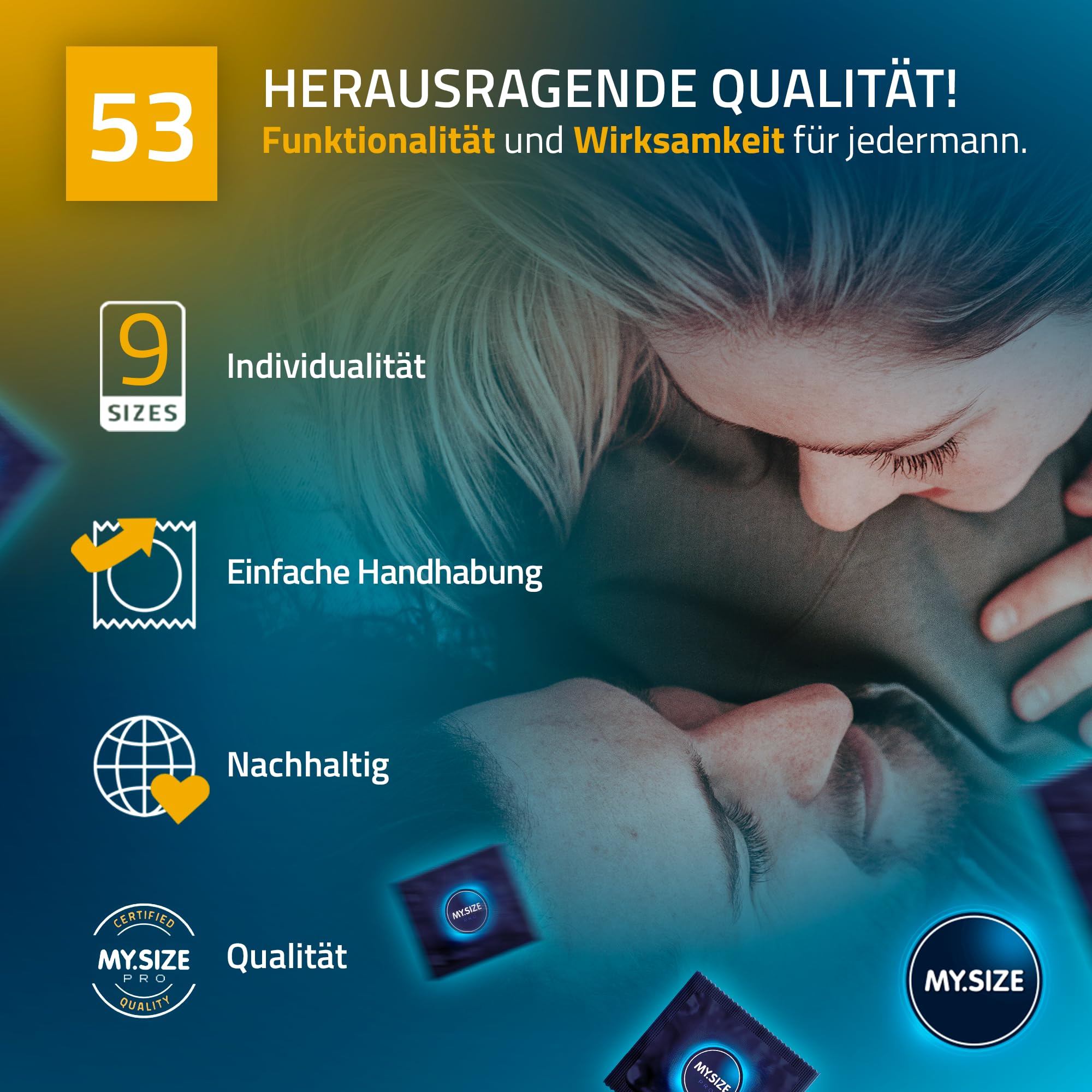 • Der Deal: MY.SIZE PRO Kondom, Breite 53mm, 36 Stück. Erhältlich in weiteren nominalen Breiten. CE gekennzeichnet. Gemäss EU-Richtlinie Für Medizinprodukte 93/42 EWG. mit Gratis Online Measuring App.
