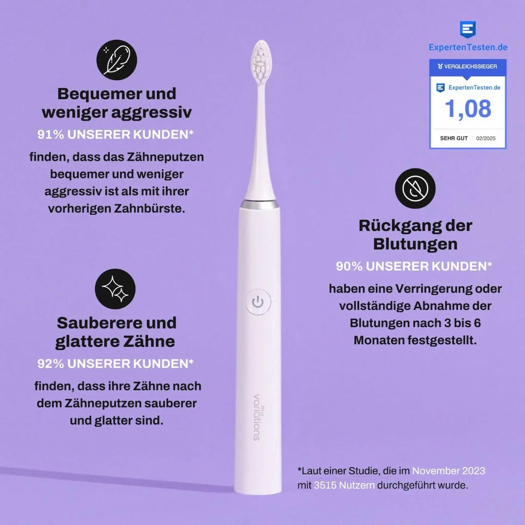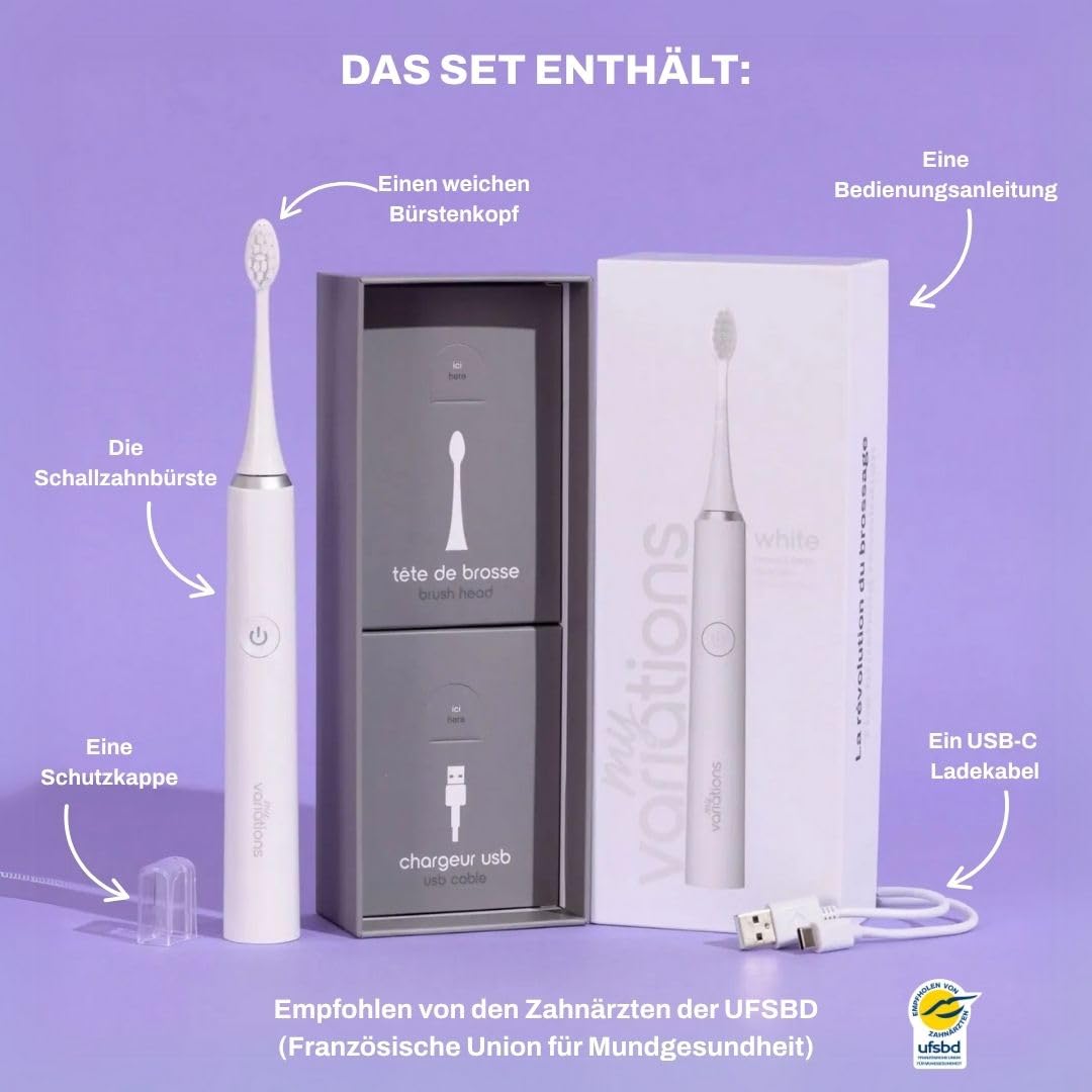 My Variations - Elektrische Schallzahnbürste – wiederaufladbar – 1 Monat Akku – 5 Putzmodi – integrierter 2-Minuten-Timer – 1 Griff und 1 Bürste (weiss)