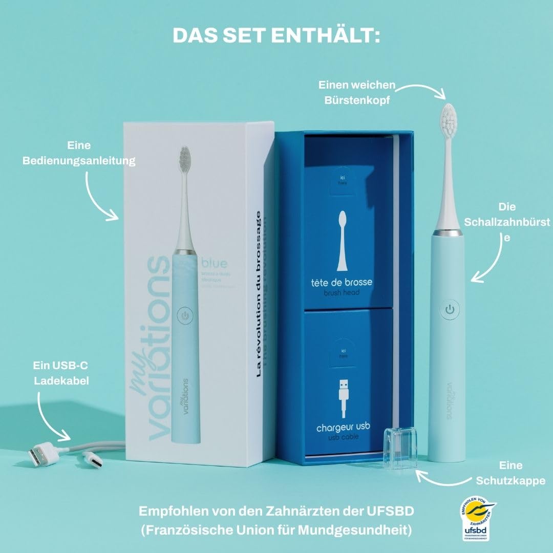 My Variations - Elektrische Schallzahnbürste – wiederaufladbar – 1 Monat Akku – 5 Putzmodi – integrierter 2-Minuten-Timer – 1 Griff und 1 Bürste (blau)