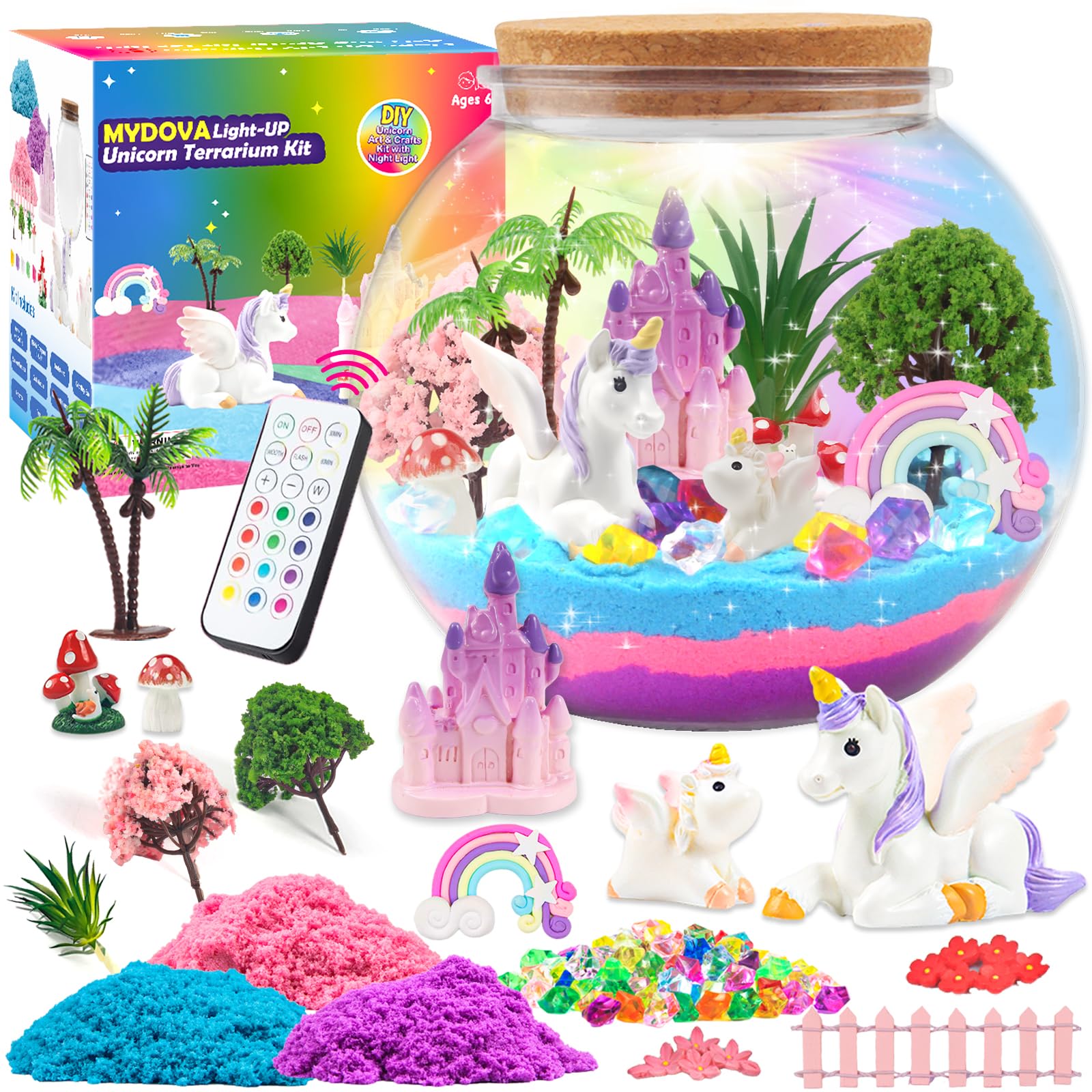 MYDOVA Einhorn Geschenke für Mädchen, DIY Einhorn Terrarium Bastelset mit Timing Fernbedienung und farbigen Lichtern, Nachtlicht Basteln, Wissenschaft Kit, Spielzeug für Mädchen ab 6, 7, 8+ Jahren
