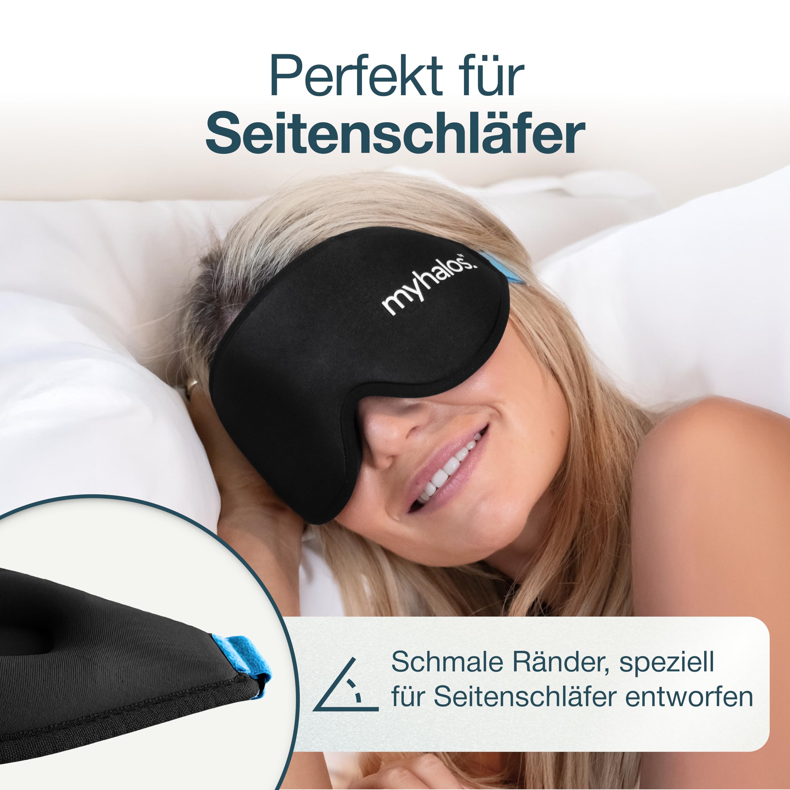 MyHalos Schlafmaske 3D für Frauen & Herren – Verdunkelnde Augenmaske zum Schlafen mit Etui – Druckfrei, Atmungsaktiv & Waschbar – Ideal für Reisen, Flugzeug, Seitenschläfer & Wimpernverlängerung