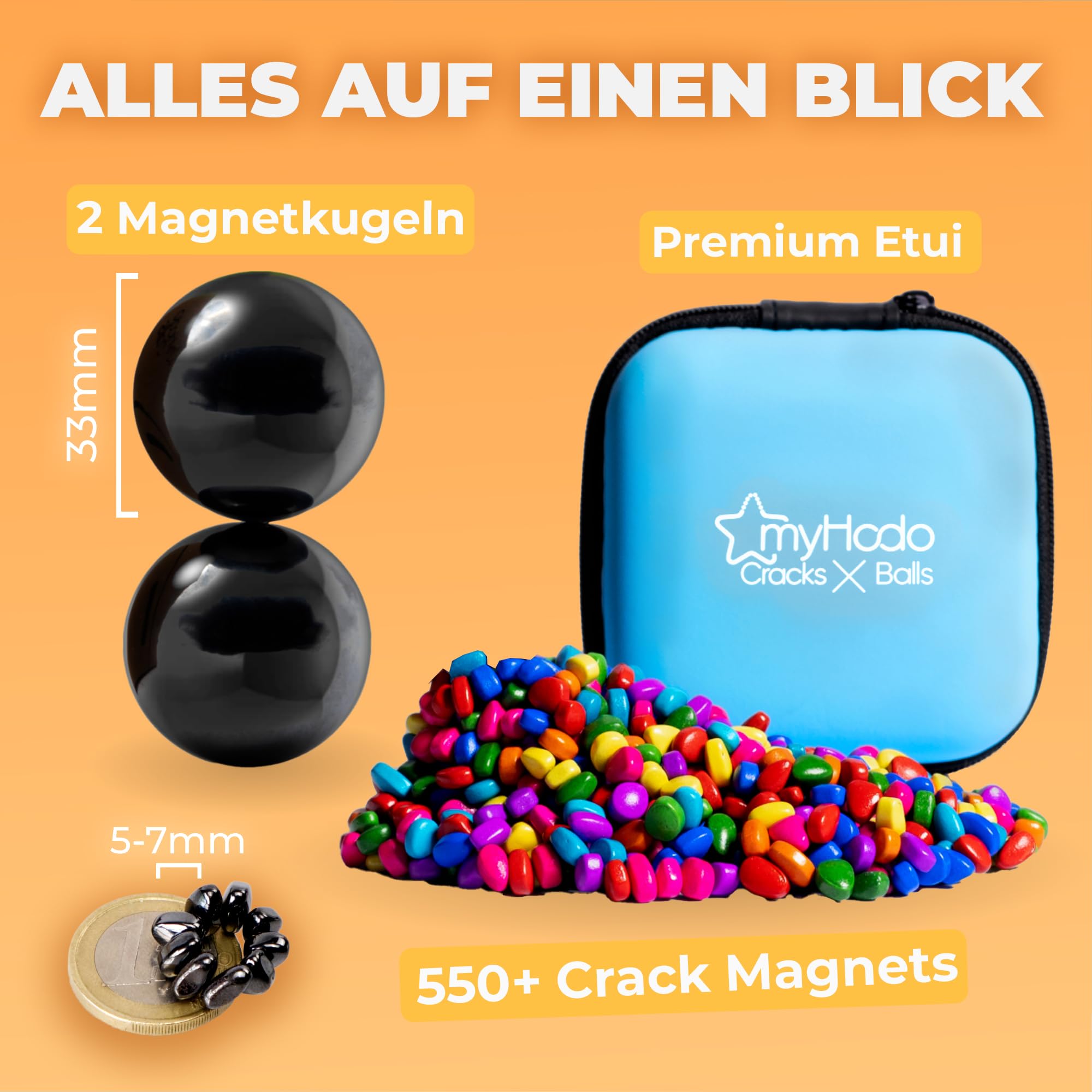myHodo Crack Magnets Bundle | 2X Extra Starke Magnetkugeln (33mm) & 550+ Bunte Magnetsteine (~6mm) | Magnetspiel Set für ASMR, Stressabbau & Kreativität | Anti-Stress Geschenk | ADHS HIlfsmittel