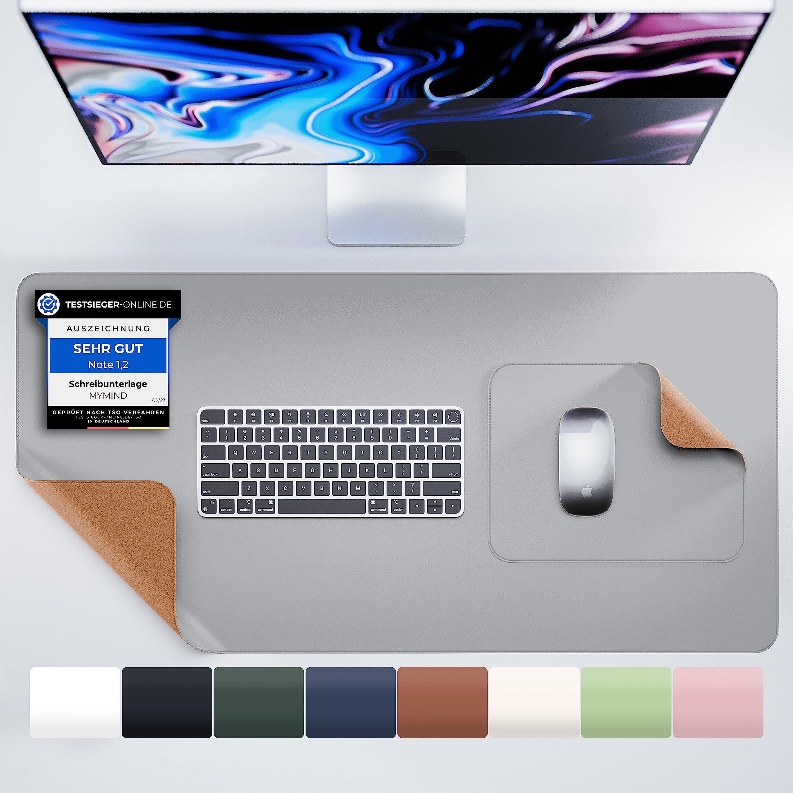 MYMIND® Schreibtischunterlage [2-er Set] 80x40cm - Premium Qualität mit extra Mauspad - Schreibunterlage für Homeoffice - Schreibtisch Unterlagenmatte rutschfest - Desk Mat - Unterlage (Grau)