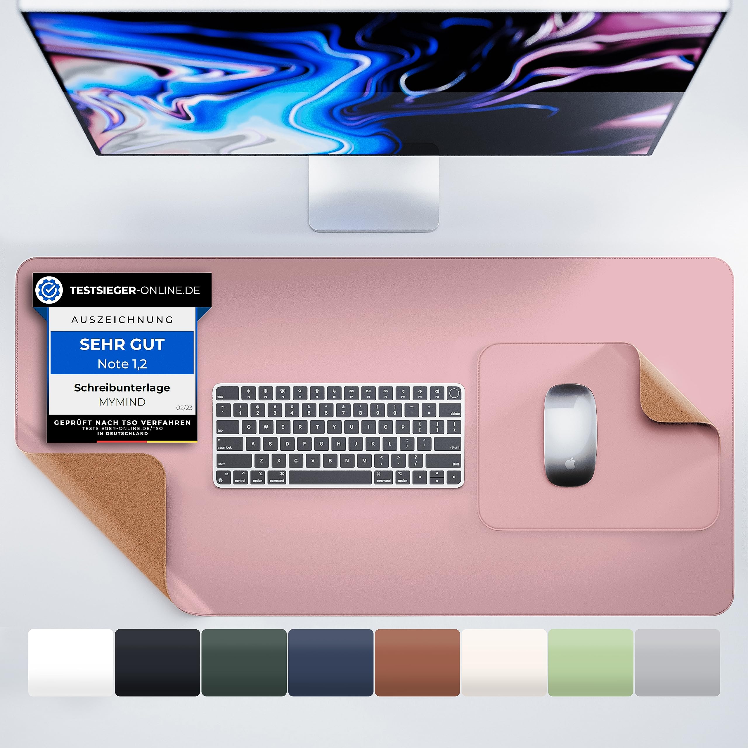 MYMIND® Schreibtischunterlage [2-er Set] 80x40cm - Premium Qualität mit extra Mauspad - Schreibunterlage für Homeoffice - Schreibtisch Unterlagenmatte rutschfest - Desk Mat - Unterlage (Rosa)