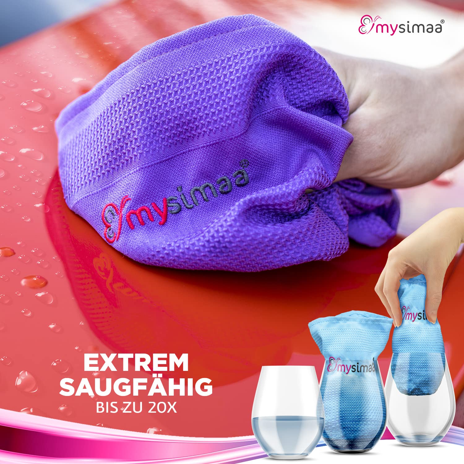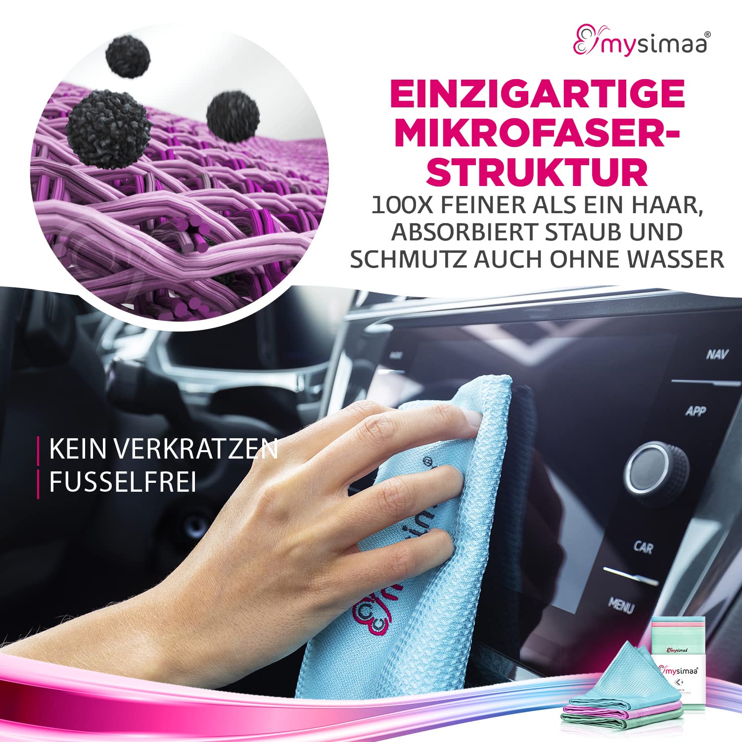 mysimaa® Premium Putztücher Profi Microfaser Allzweck-Reinigungstücher ohne Putzmittel für Streifenfreien Glanz im Haushalt, Auto, Büro sowie für Fenster Spiegel Glas UVM. (Blau, Rosa, Grün)