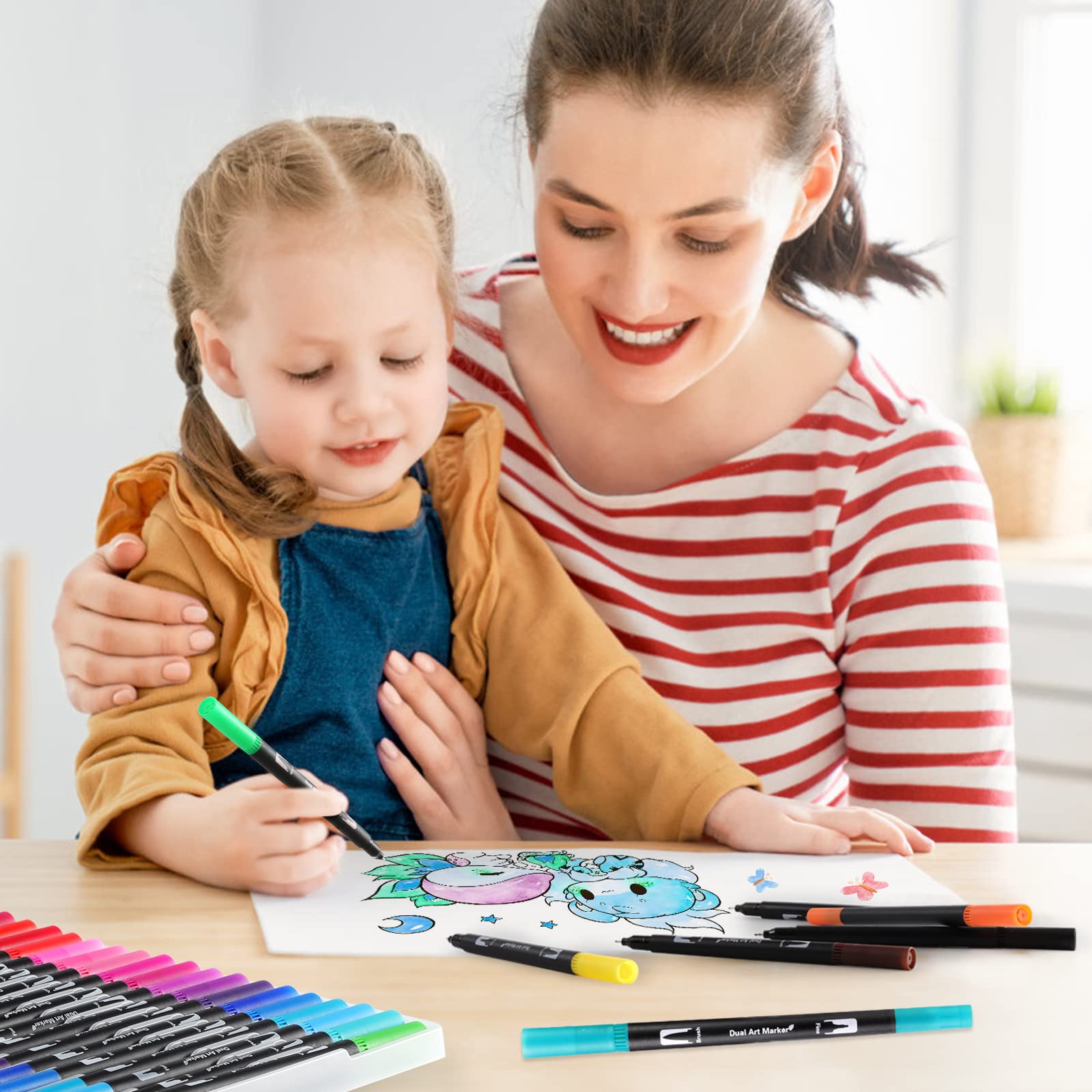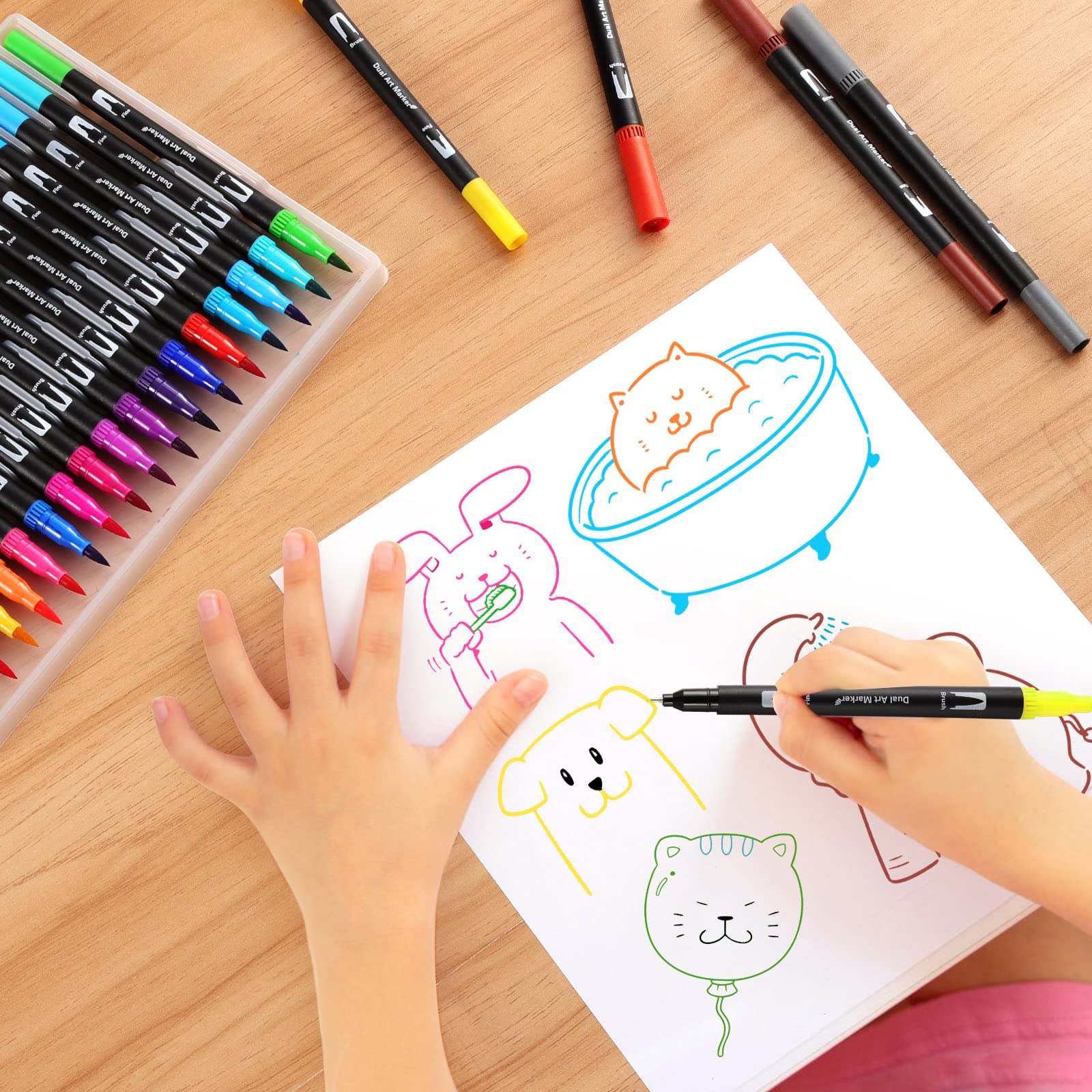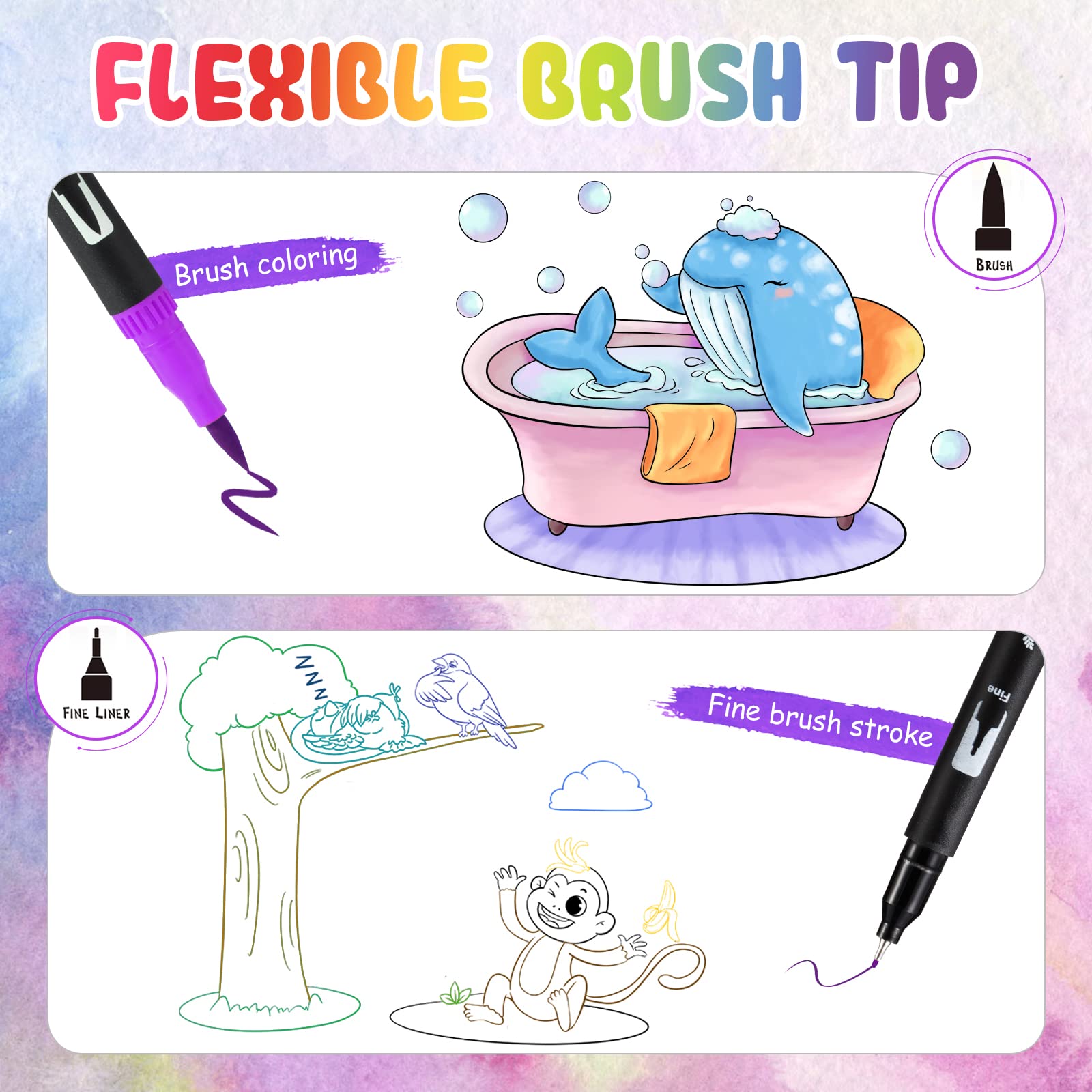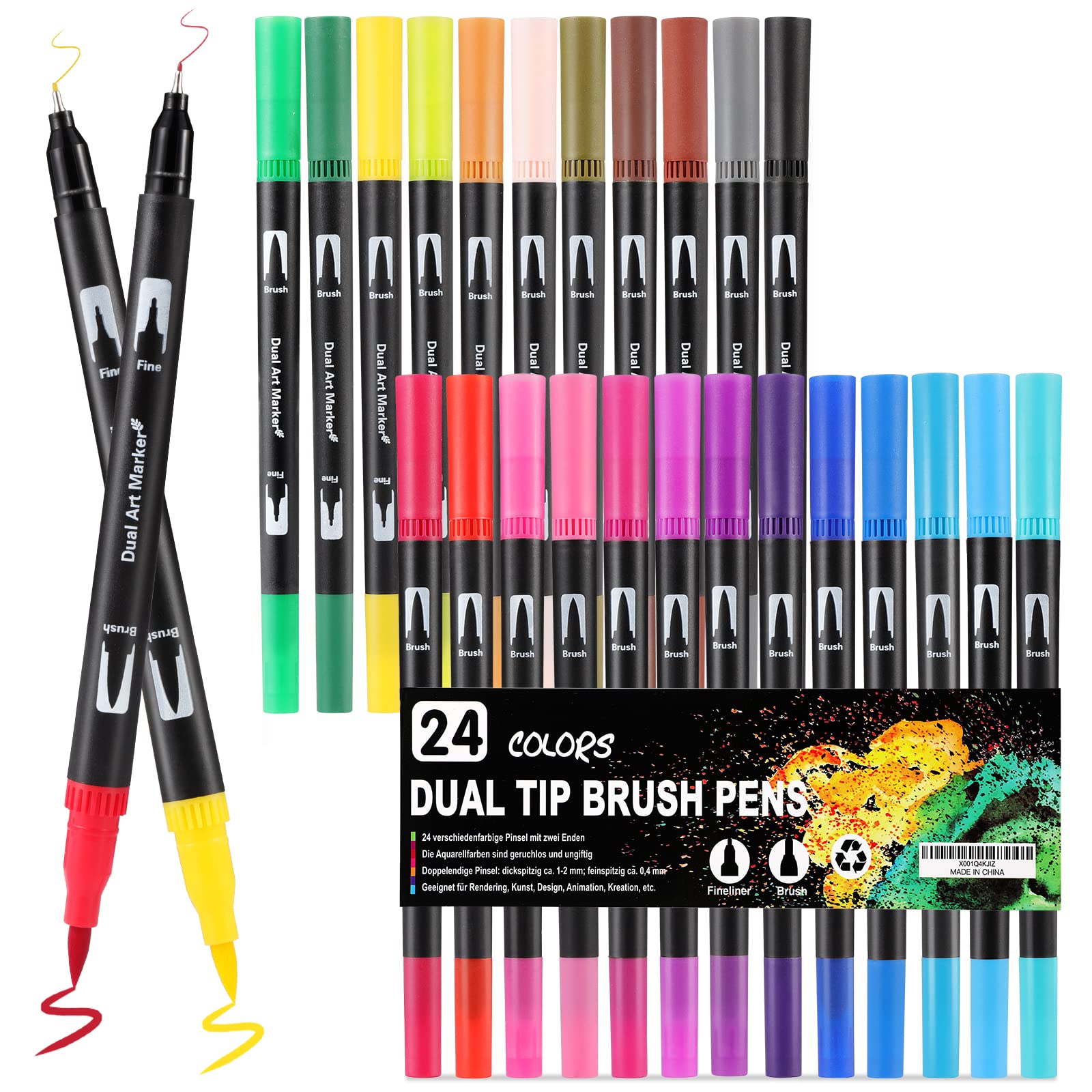 Mzh Art Dual Brush Pen Set 24 Farben Doppelfilzstifte, Malstifte für Kinder und Erwachsene, Faserschreiber und Fineliner Set für Aquarelle, Handlettering Mandala Kalligraphie Manga, 0.4 &1-2mm