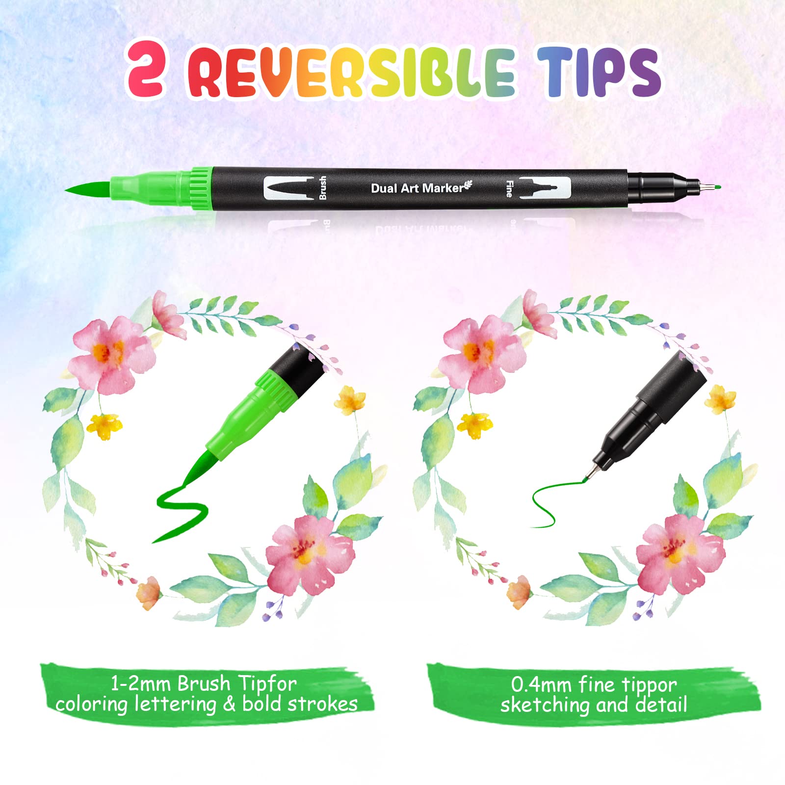 • 【Dual Tips Design】Unsere Buntstifte verfügen sowohl über eine feine Spitze als auch über eine flexible Pinselspitze. Verwenden Sie die 1-2mm Pinselspitze zum Färben, Schattieren und Mischen und die 0,4mm feine Spitze zum Outlining. perfekt zum Ausdruck bringen Ihre kreative Inspiration.