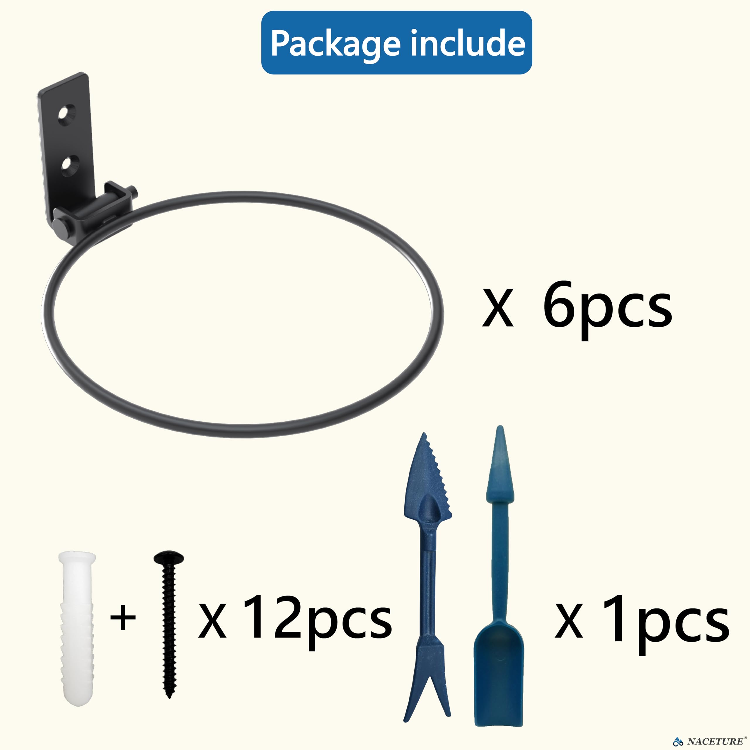 NACETURE Blumentopf-Ringhalterung, Wandhalterung, faltbar, robust, rund, Metall, Pflanzen-Aufhängung für Zaun, Innen- und Aussenbereich, ca. 15 cm, 6 Stück