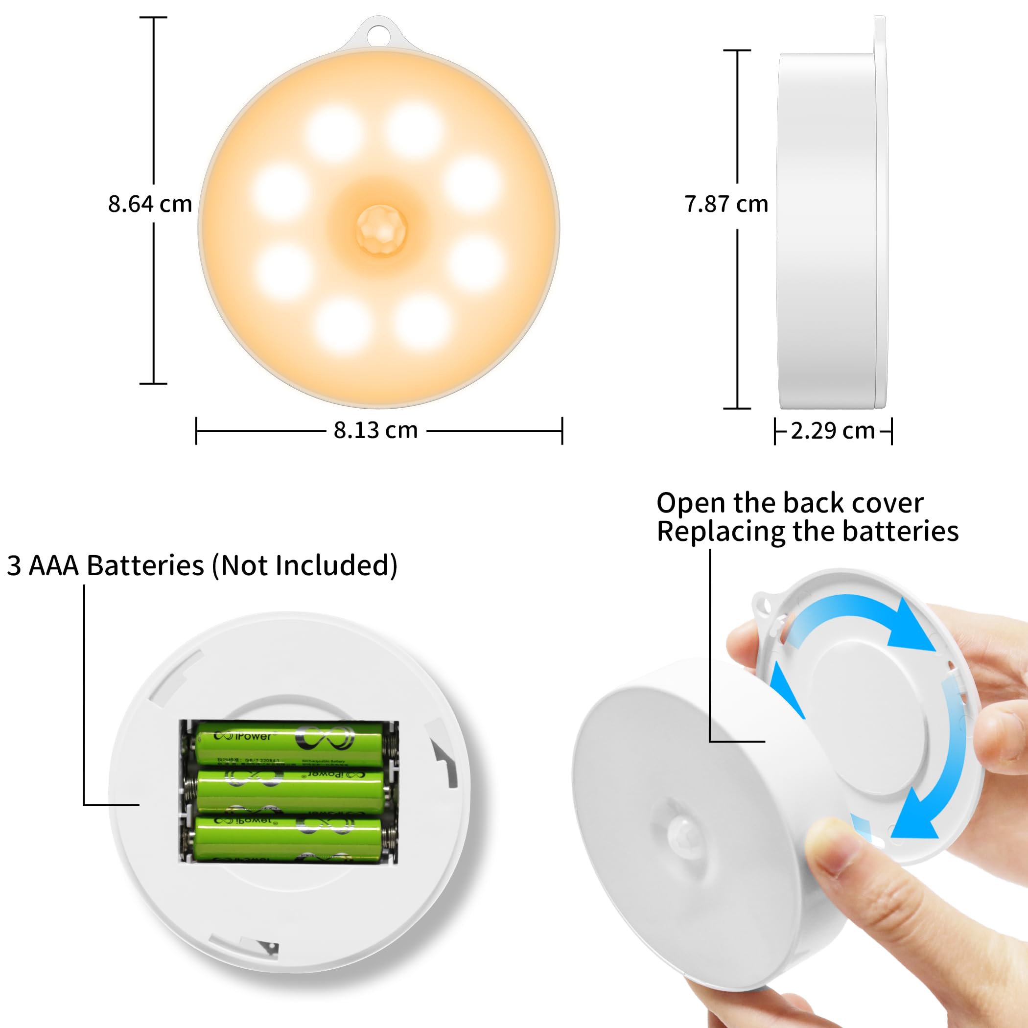 Nachtlicht mit Bewegungsmelder,3*AAA Batteriebetriebene lampen, Auto ON/OFF, Schrankbeleuchtung,Bewegungsmelder innen für Treppe, Schlafzimmer, Küche, Kinderzimmer. warmes Licht (Warmweiss 6 Stück)