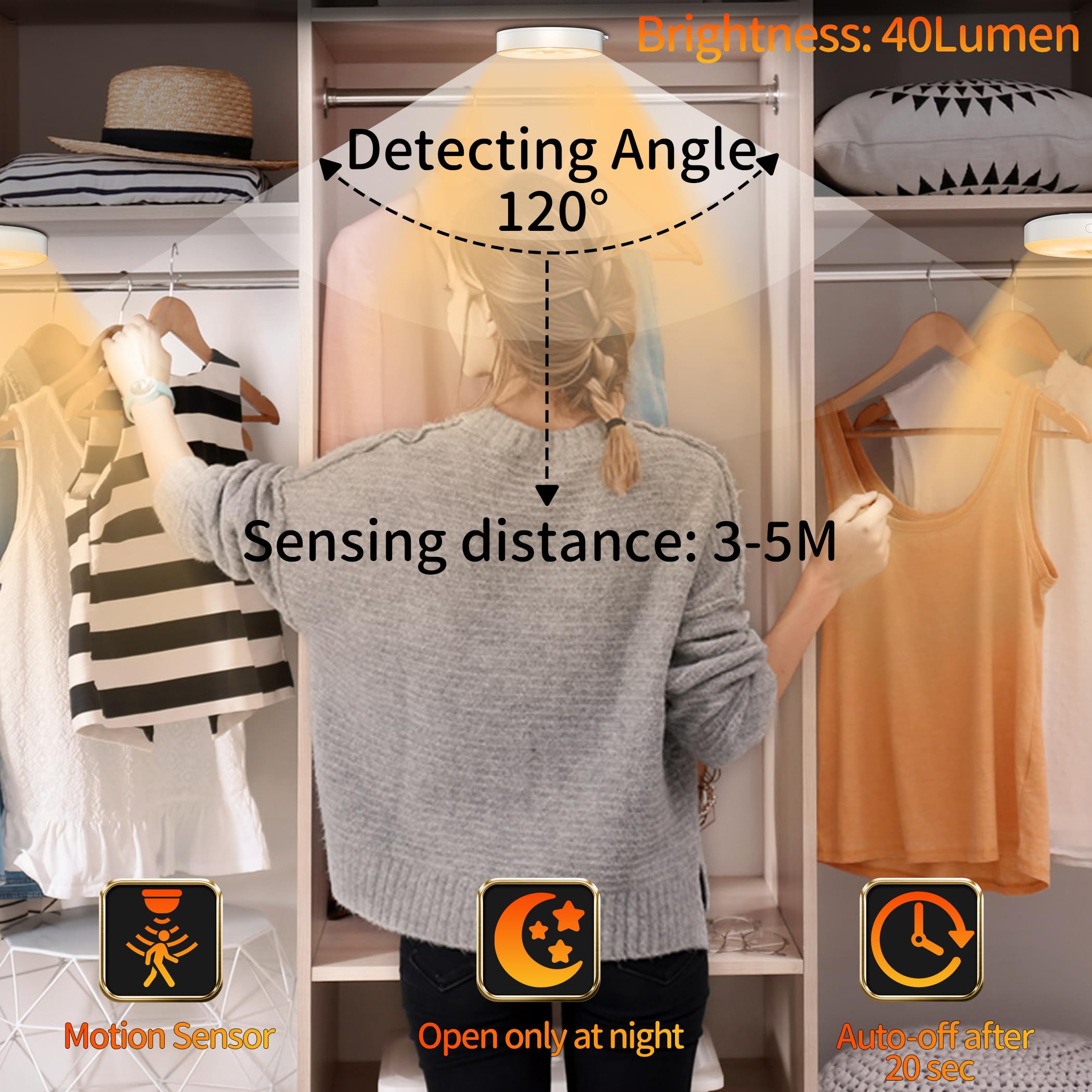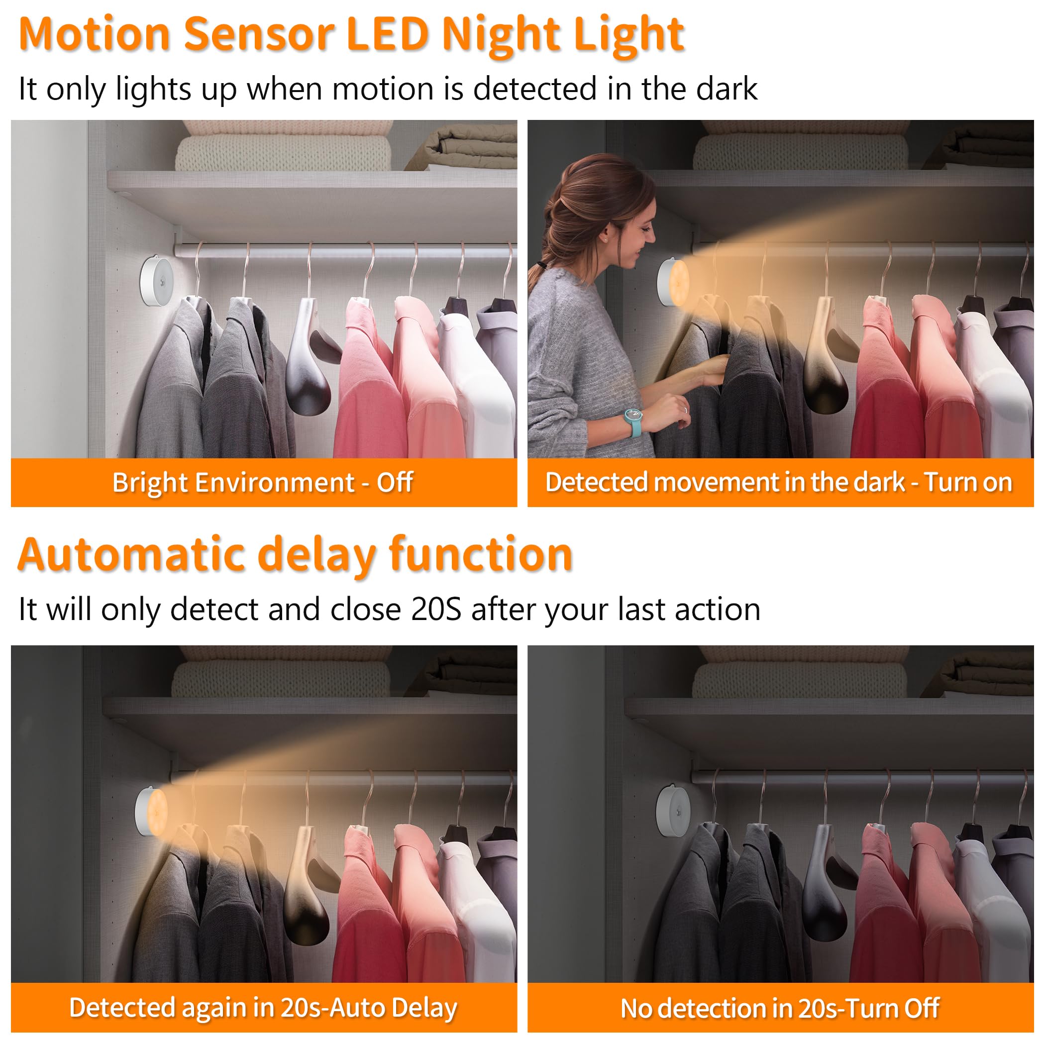 Nachtlicht mit Bewegungsmelder,3*AAA Batteriebetriebene lampen, Auto ON/OFF, Schrankbeleuchtung,Bewegungsmelder innen für Treppe, Schlafzimmer, Küche, Kinderzimmer. (Warmweiss 6 Stück)