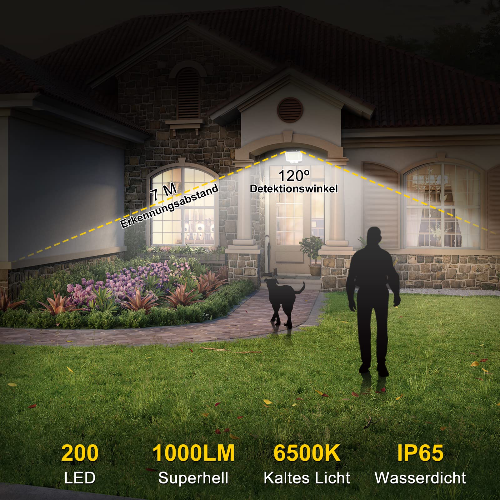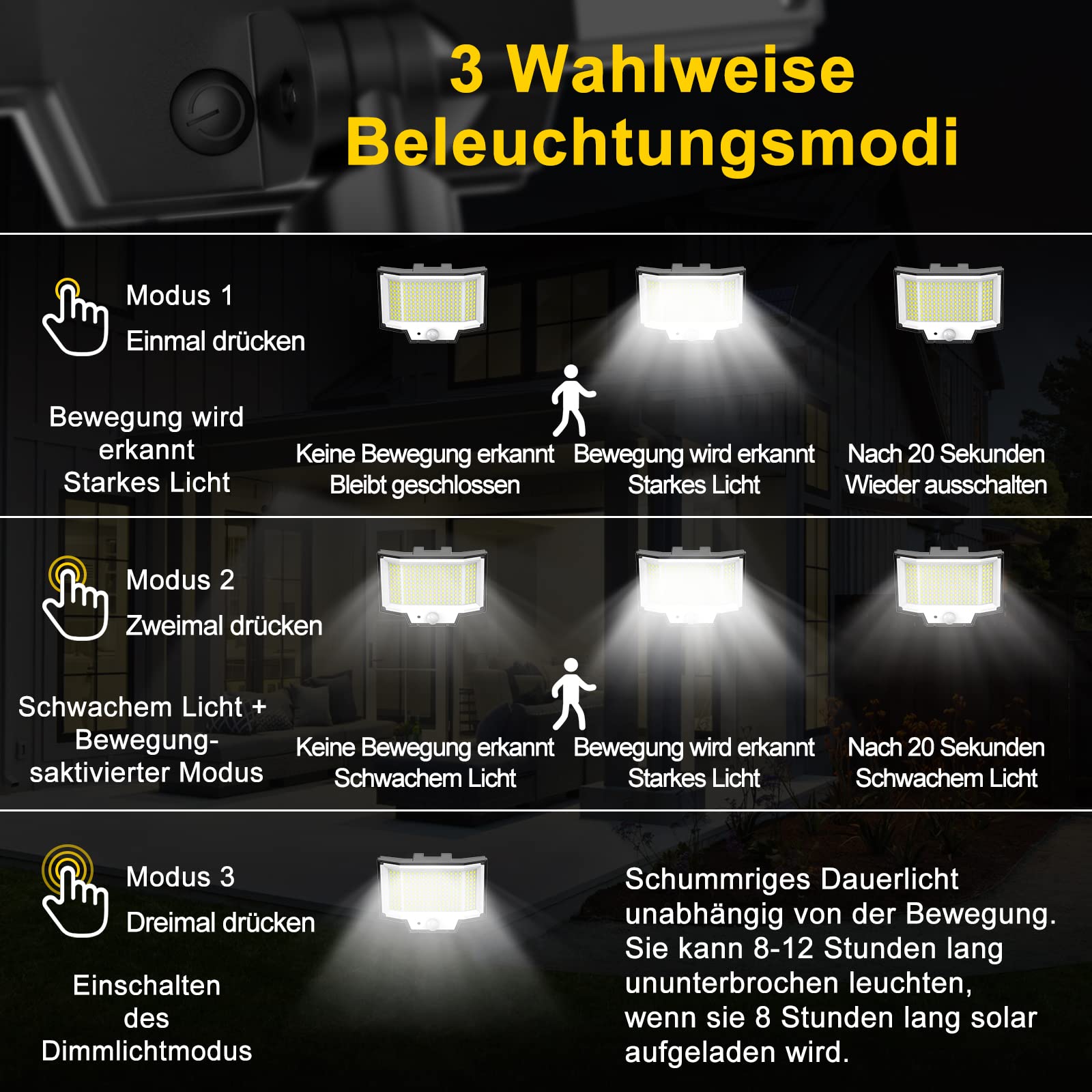 NACINIC Solarlampen für Aussen mit Bewegungsmelder, 200 LED Superhelle Solarleuchten mit Bewegungsmelder, 3 Modi LED Solar Strahler, IP65 Wasserdichte Solarlampen für Garten mit 5M Kabel (2 Stück)