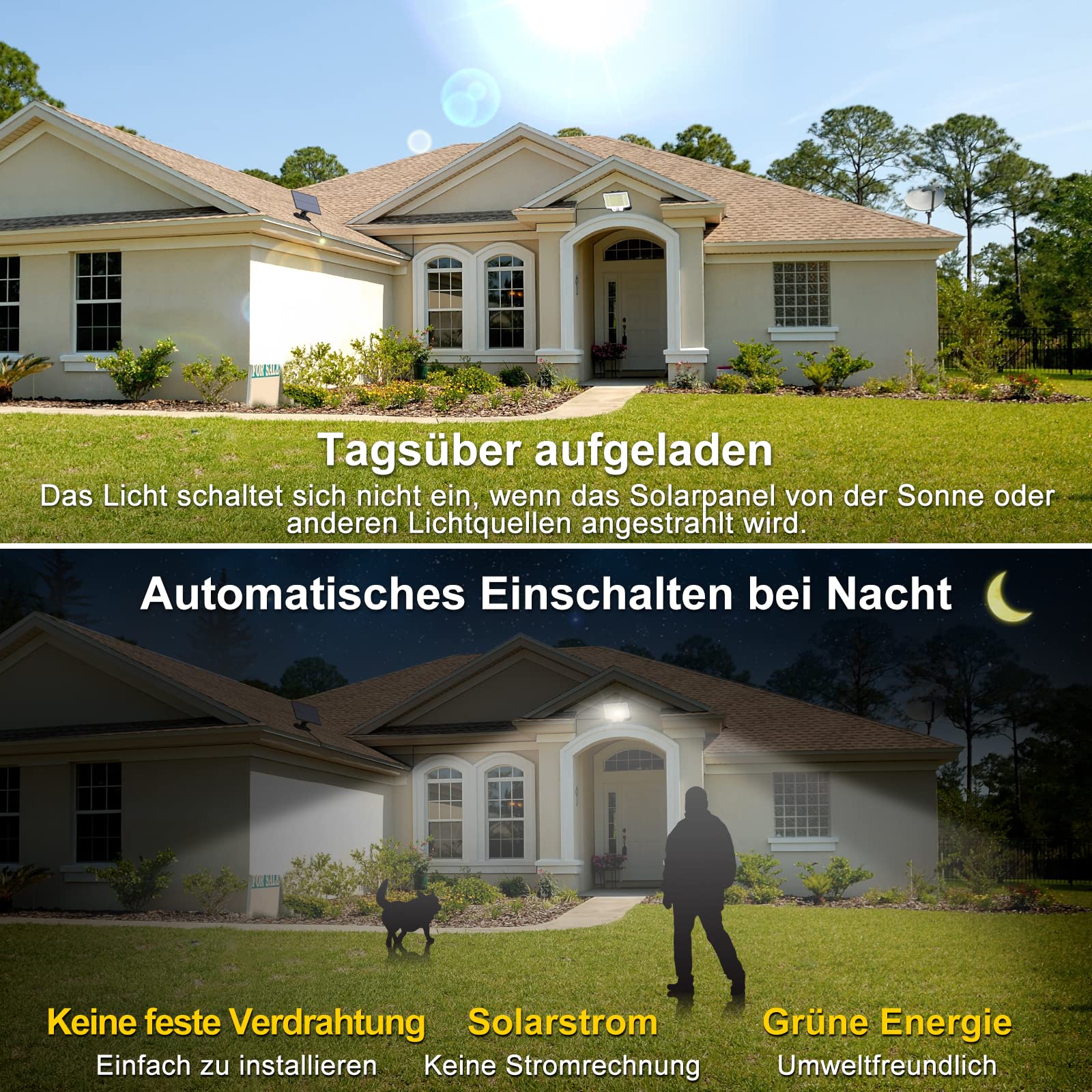 Solar-Aussenleuchten mit Bewegungsmelder, wasserdicht mit 600 hellen LEDs, Fernbedienung, separates Panel, 4,6 m Kabel, Dämmerung bis Morgendämmerung, Beleuchtungsmodus, NACINIC Sicherheit, solarbetriebenes Flutlicht für Veranda, Hof, Schuppen, Wand