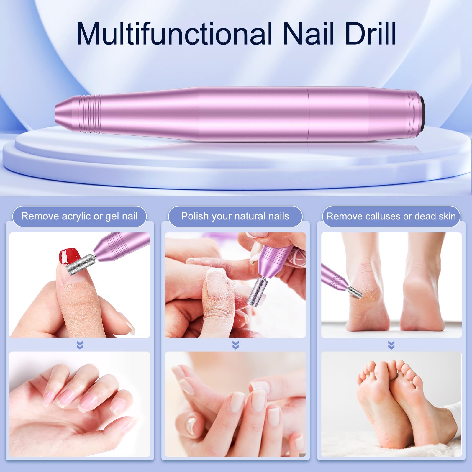 Bikon elektrische Nagelfeile tragbarer Nagelfraeser fuer Manikuere und Pedikuere