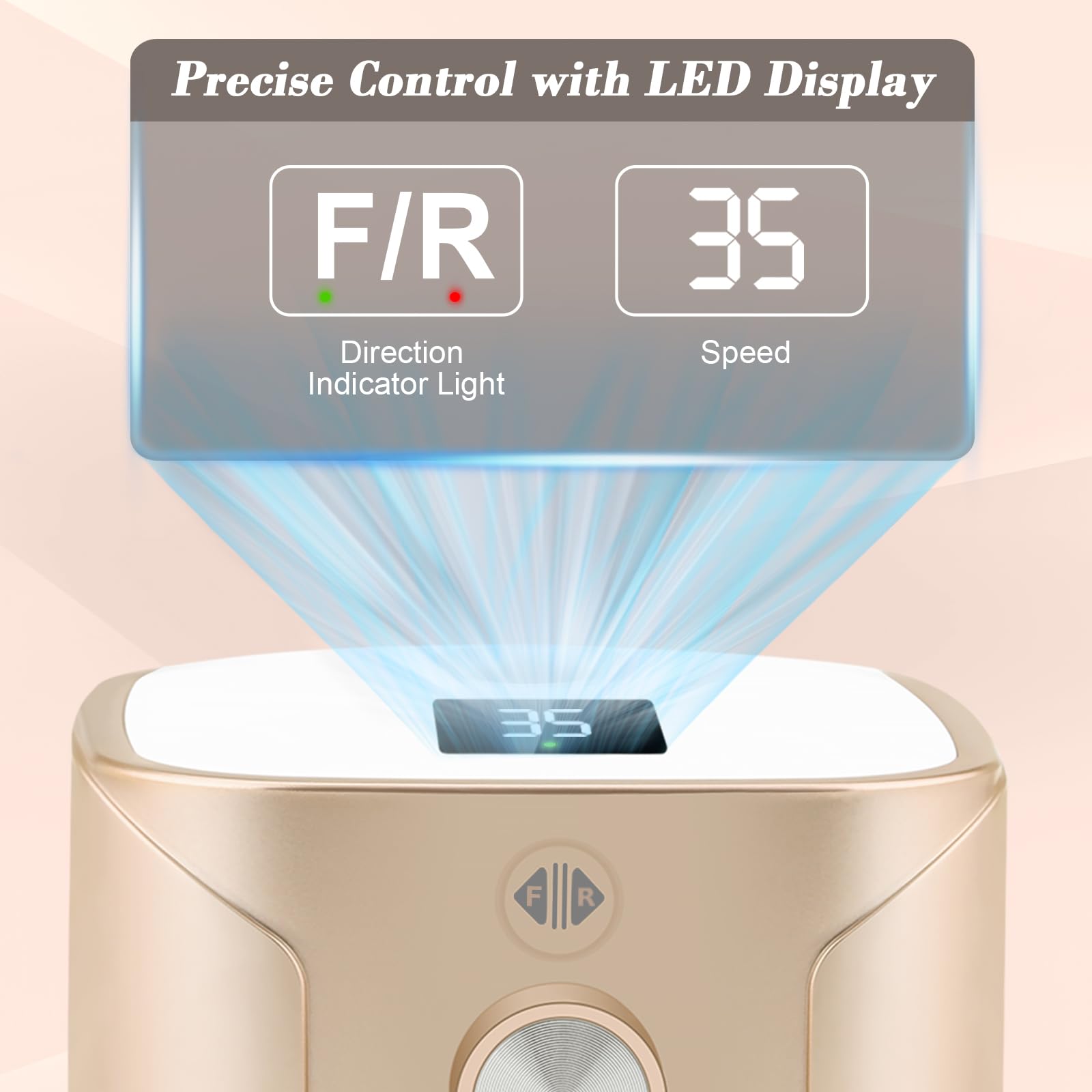 Der elektrische Nagelfraeser verfuegt ueber eine maximale Drehzahl von bis zu 35.000 Umdrehungen pro Minute (Herstellerangabe) und ermoeglicht praezises Formen, Polieren und Abtragen von Nagelmaterial. Eine digitale LED Anzeige zeigt Geschwindigkeit und Drehrichtung klar und uebersichtlich an und erleichtert die exakte Einstellung waehrend der Anwendung.
