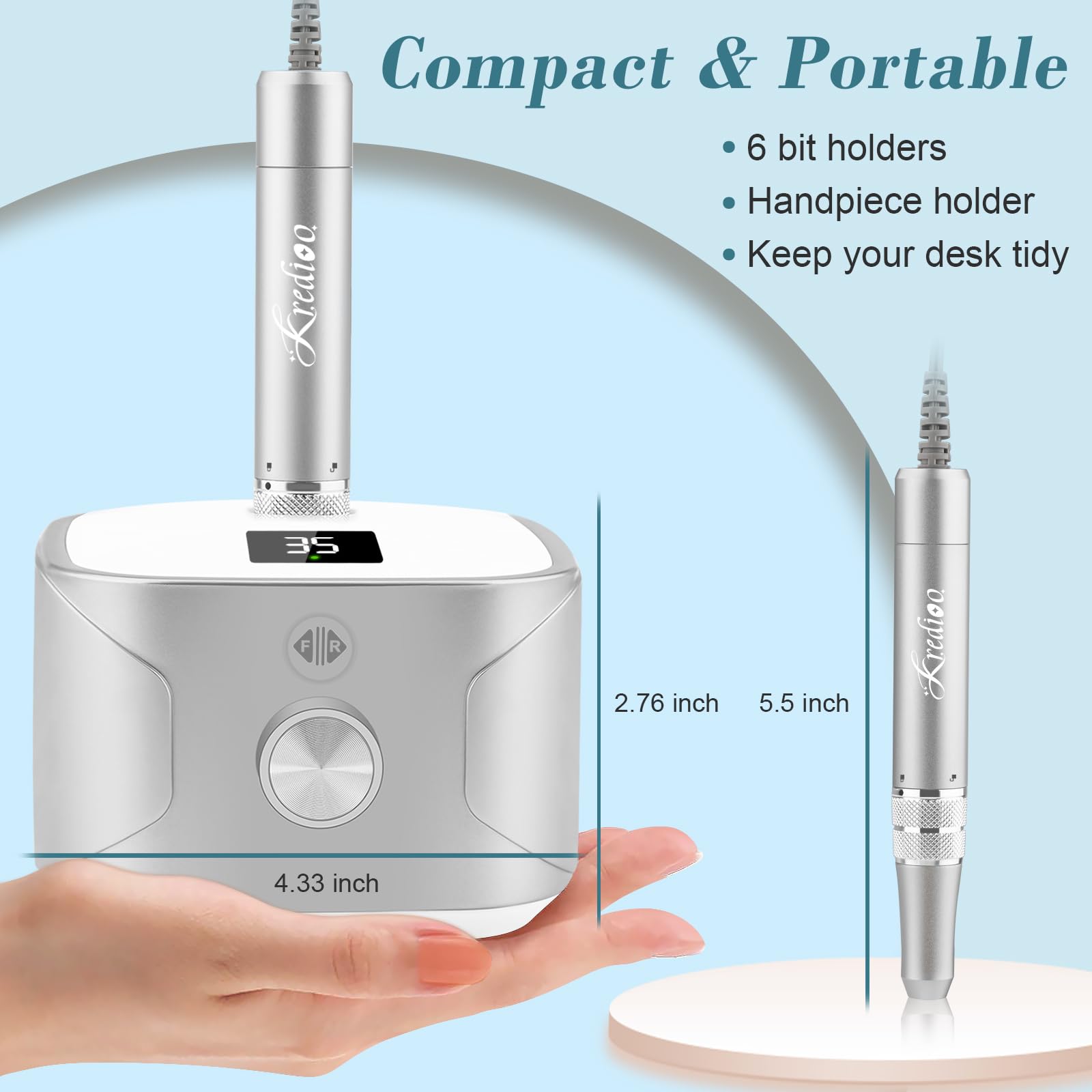 Kredioo Nagelfraeser 35000 U/min – Profi Fraeser Set mit LED Display und 11 Bits Silber